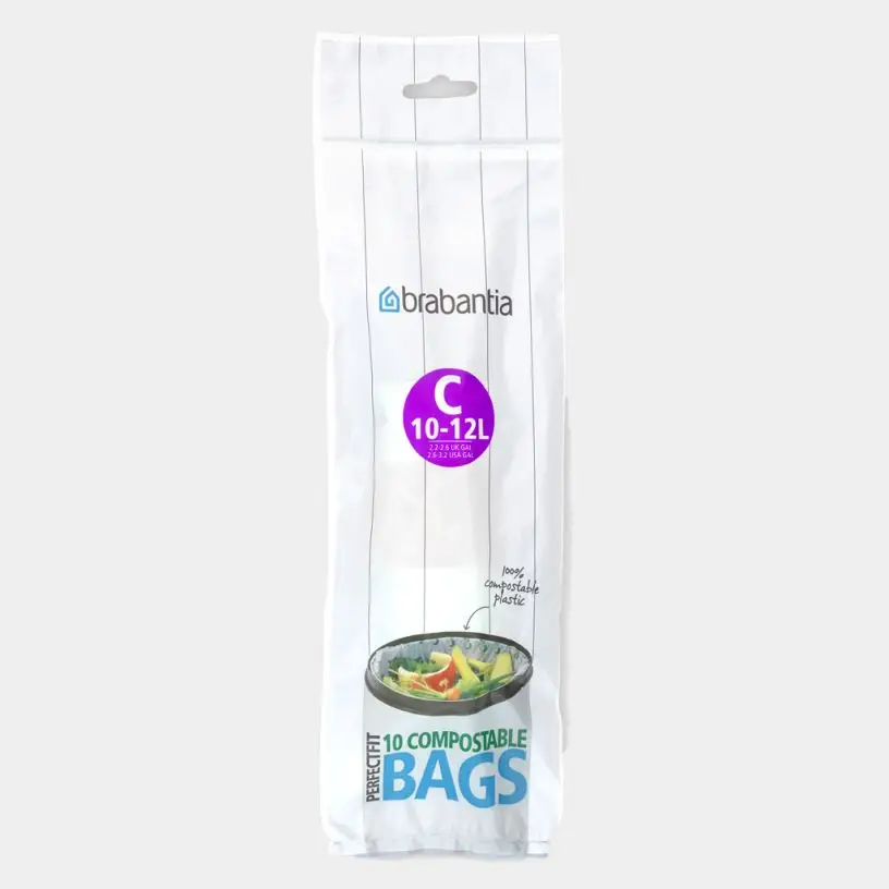 Worki biodegradowalne "C" 10 - 12 l firmy Brabantia to ekologiczne akcesoria, zaprojektowane z myślą o segregacji odpadów w sposób przyjazny dla środowiska.