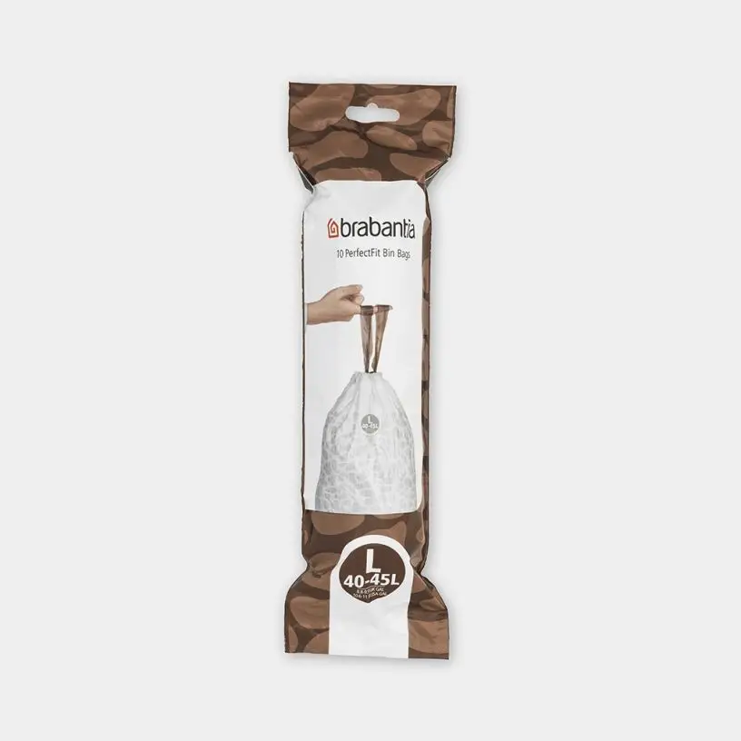 - Duże zapasy – 10 worków na śmieci, które idealnie pasują do kosza 40–45 l marki Brabantia (kod L).