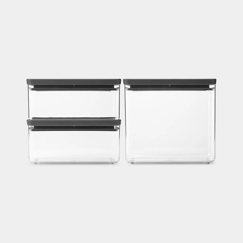 Brabantia - Zestaw 3 pojemników prostokątnych 2 x 1,5 i 3,5 l TASTY+ Ciemny Szary