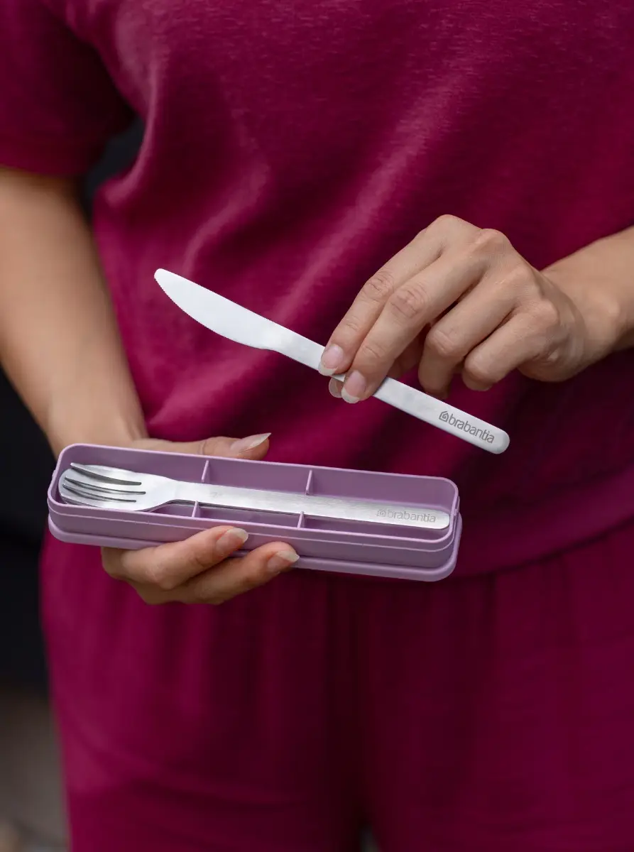Brabantia Make & Take to 3-częściowy zestaw sztućców wielokrotnego użytku, zaprojektowany z myślą o osobach, które chcą wygodnie i odpowiedzialnie jeść poza domem. Idealny do pracy, szkoły, na piknik, w podróży czy na lunch „na wynos”.