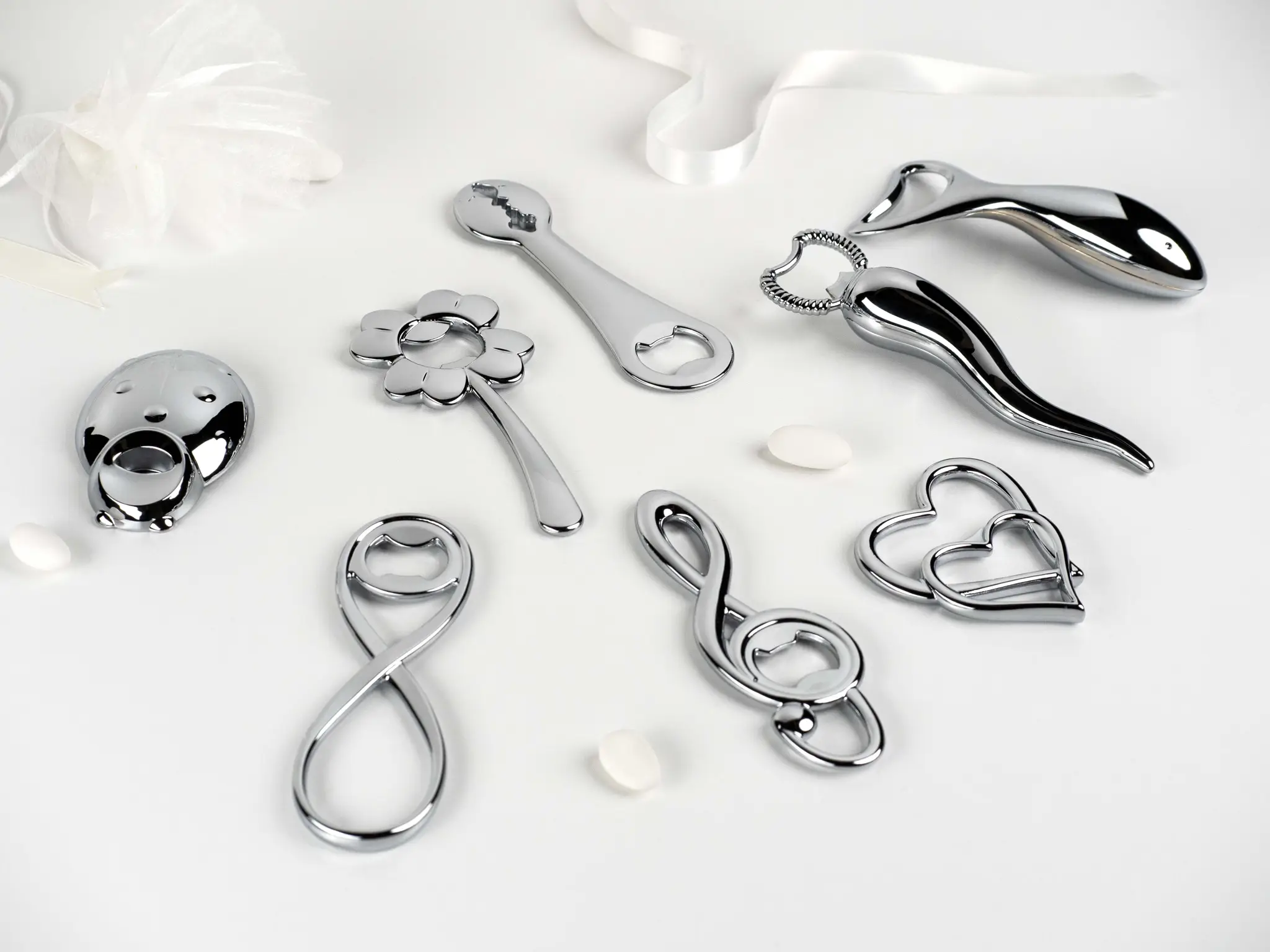Sound jest inspirowany światem muzyki, a jego design przypomina zarys klucza wiolinowego. To wspaniały prezent dla miłośników najbardziej niezwykłych melodii, takich jak te, które towarzyszą najważniejszym momentom w życiu. To idealny upominek dla gości na wyjątkowe okazje. Wykonany z zamaku, dostępny w wersji chromowanej i pozłacanej 24-karatowym złotem.