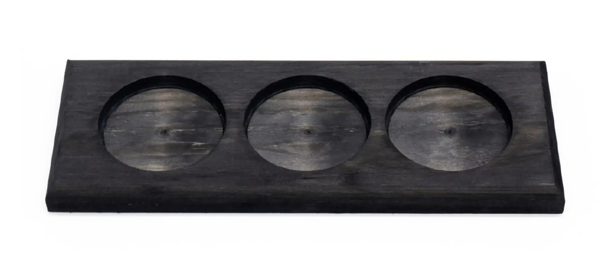 Prezentowana podstawka o wymiarach 28 x 10 cm przeznaczona jest na trzy dozowniki/pojemniki z mydłem w płynie. Wykonana została z drewna w ciemnym, prawie czarnym kolorze. Jej minimalistyczny design bardzo estetycznie się prezentuje, dzięki czemu doskonale uzupełni wystrój zarówno domowej łazienki, zamieniając ją w imitację spa, jak i wystrój pensjonatu, hotelu itp. Produkt świetnie uzupełnią oferowane przez markę mydła w płynie.