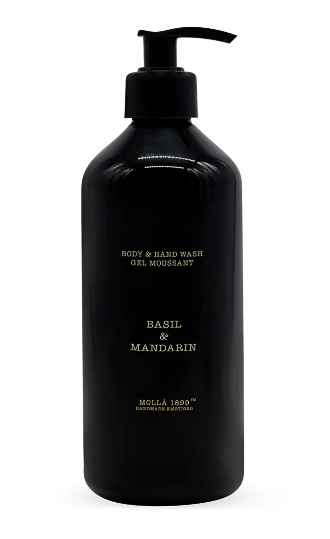 Prezentowane żelowe mydło w płynie w ilości 500 ml ma zapach Basil & Mandarin, łączący wonie limonki, mandarynki, kwiatów m.in. jaśminu z nutami orientalnymi. Minimalistyczne opakowanie o wymiarach 7 x 20 cm (śr. x wys.) wykonane zostało z tworzywa sztucznego w kolorze czarnym, dzięki czemu elegancko się zaprezentuje pod prysznicem, na umywalce lub półce w łazience. Na jego przedniej stronie umieszczona została naklejka z nazwą zapachu i przeznaczeniem żelu, tak by łatwo dało się go zidentyfikować spośród innych kosmetyków. Umieszczona na górze pompka pozwoli na wygodne nabieranie mydła, dozując jego ilość na dłoń lub gąbkę przy każdym naciśnięciu, by móc je łatwo rozprowadzić po skórze. Mydło nada się zarówno do mycia dłoni, jak i ciała, dzięki czemu będzie dość uniwersalne.