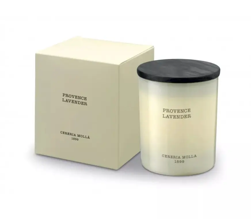 Świeca premium o zapachu lawendowowym posiada wagę 230 gram i jest w stanie świecić przez ok. 60 godzin po rozpaleniu. Została ręcznie wykonana w Hiszpanii i użyto w niej wosku sojowego osadzonego w szklanym opakowaniu nadającego się do recyklingu, gdy knot świecy został wykonany w 100% z bawełny.
