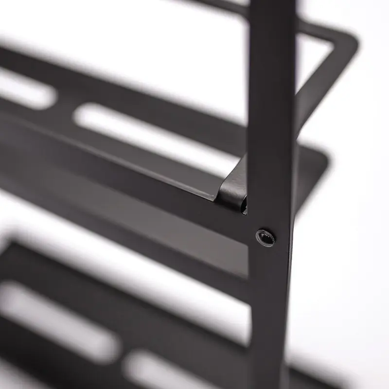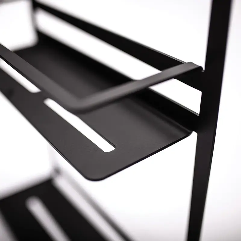 Półka na kabinę prysznicową typu A z kolekcji Mokko to praktyczne i eleganckie rozwiązanie dla nowoczesnych łazienek. Wyposażona w dwie ażurowe półki na kosmetyki oraz trzy haczyki na ręczniki, pozwala wygodnie uporządkować niezbędne akcesoria kąpielowe. Montowana na stałych szybach kabiny lub w modelach typu walk-in, zapewnia szybki i bezproblemowy montaż – półki znajdują się po wewnętrznej stronie, a haczyki na zewnątrz. Akcesorium wykonano z wytrzymałej stali o grubości 2,5 mm. Dzięki minimalistycznej formie półka doskonale wpisuje się w aranżacje w stylu industrialnym, skandynawskim czy klasycznie nowoczesnym.