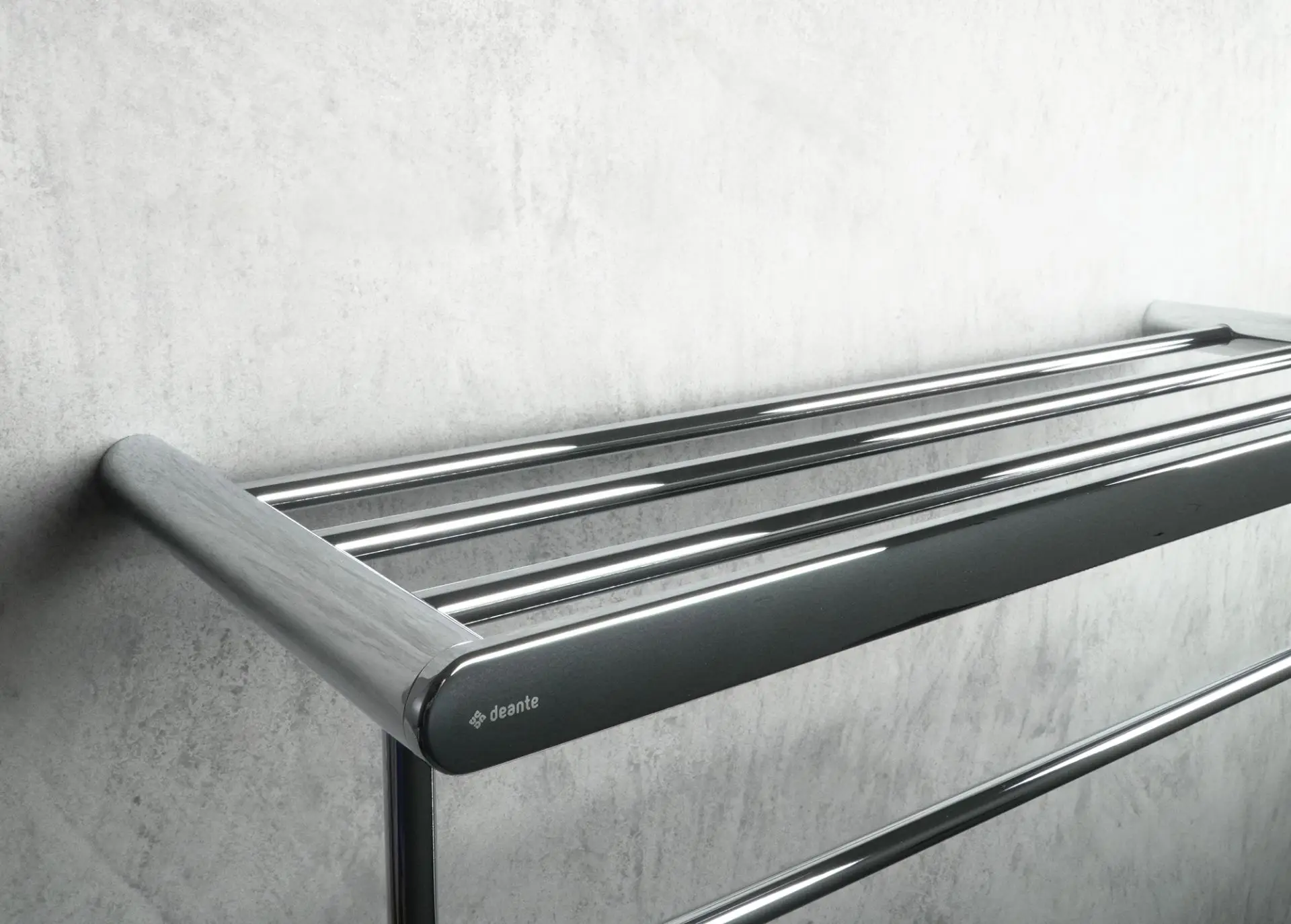 Półka żeberkowa z kolekcji Round to eleganckie i praktyczne akcesorium łazienkowe, które doskonale sprawdzi się w codziennym użytkowaniu. Dzięki swojej specjalnej konstrukcji zapewnia wygodne miejsce do przechowywania kosmetyków oraz kilku ręczników, jednocześnie zachowując lekką, nowoczesną formę. Wykonana z wysokiej jakości stali nierdzewnej, charakteryzuje się trwałością, odpornością na wilgoć oraz łatwością w utrzymaniu czystości. Perfekcyjnie ukryte elementy montażowe nadają półce subtelny, estetyczny charakter i podkreślają dbałość o detale. W komplecie znajduje się pełen zestaw instalacyjny.