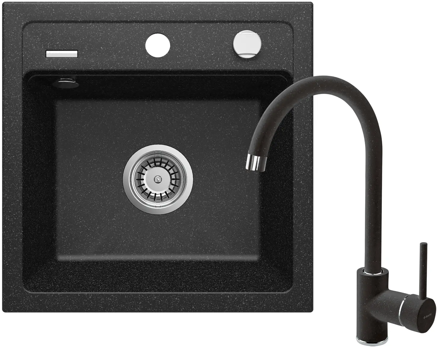 Deante - Zlewozmywak granitowy z baterią 1-komorowy 44x44 cm grafit