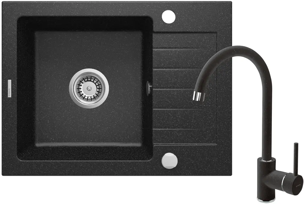 Deante - Zlewozmywak granitowy z baterią 1-komorowy z ociekaczem 58x44 cm grafit