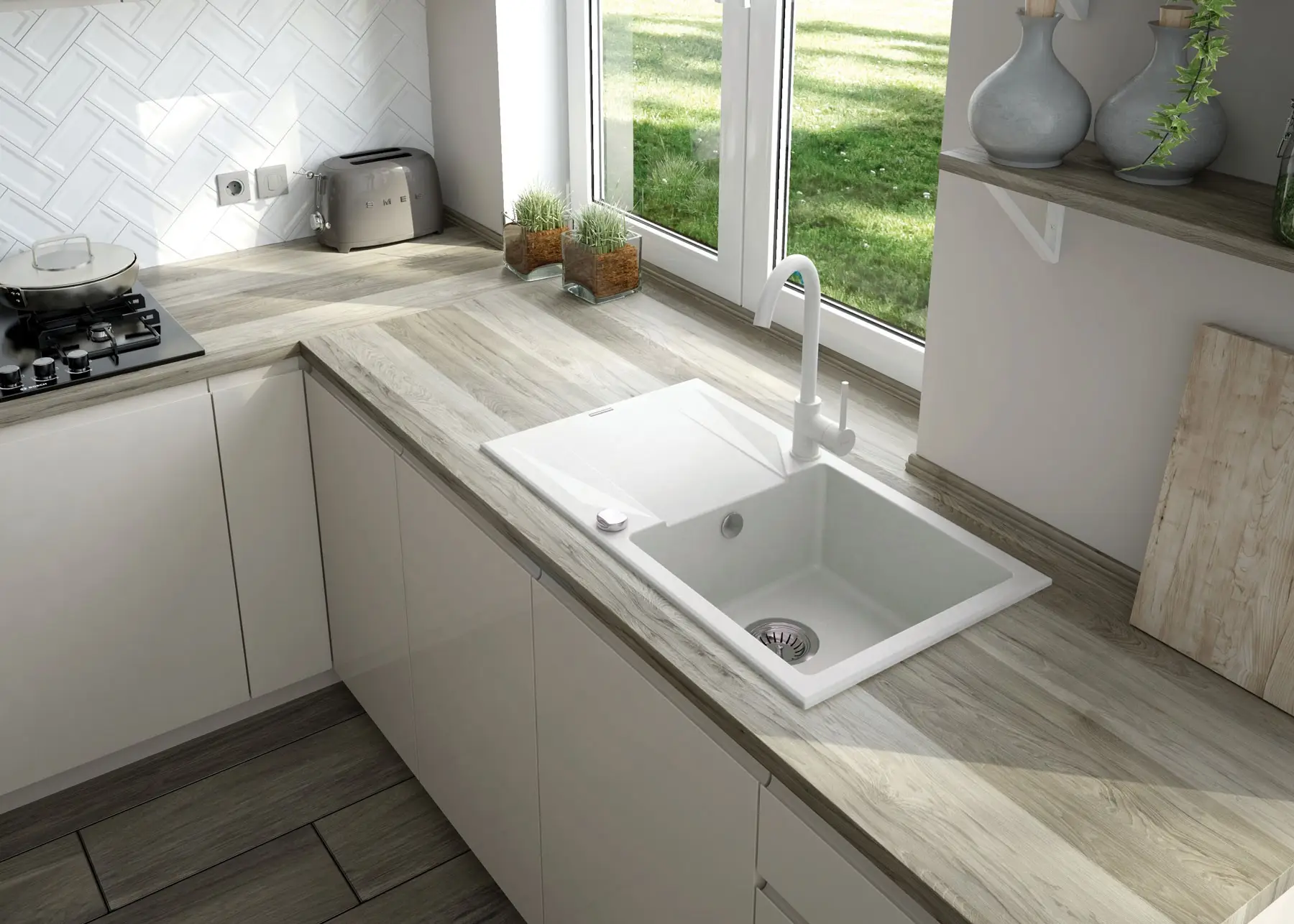 Zlewozmywak Zorba to funkcjonalny i elegancki model, idealny do każdej nowoczesnej kuchni. Wyposażony w dużą komorę oraz przestronny ociekacz, zapewnia wygodę podczas codziennych czynności, takich jak mycie naczyń i przygotowywanie posiłków. Dzięki przemyślanej konstukcji ociekacza, nadmiar wody szybko spływa do komory, co ułatwia utrzymanie porządku.