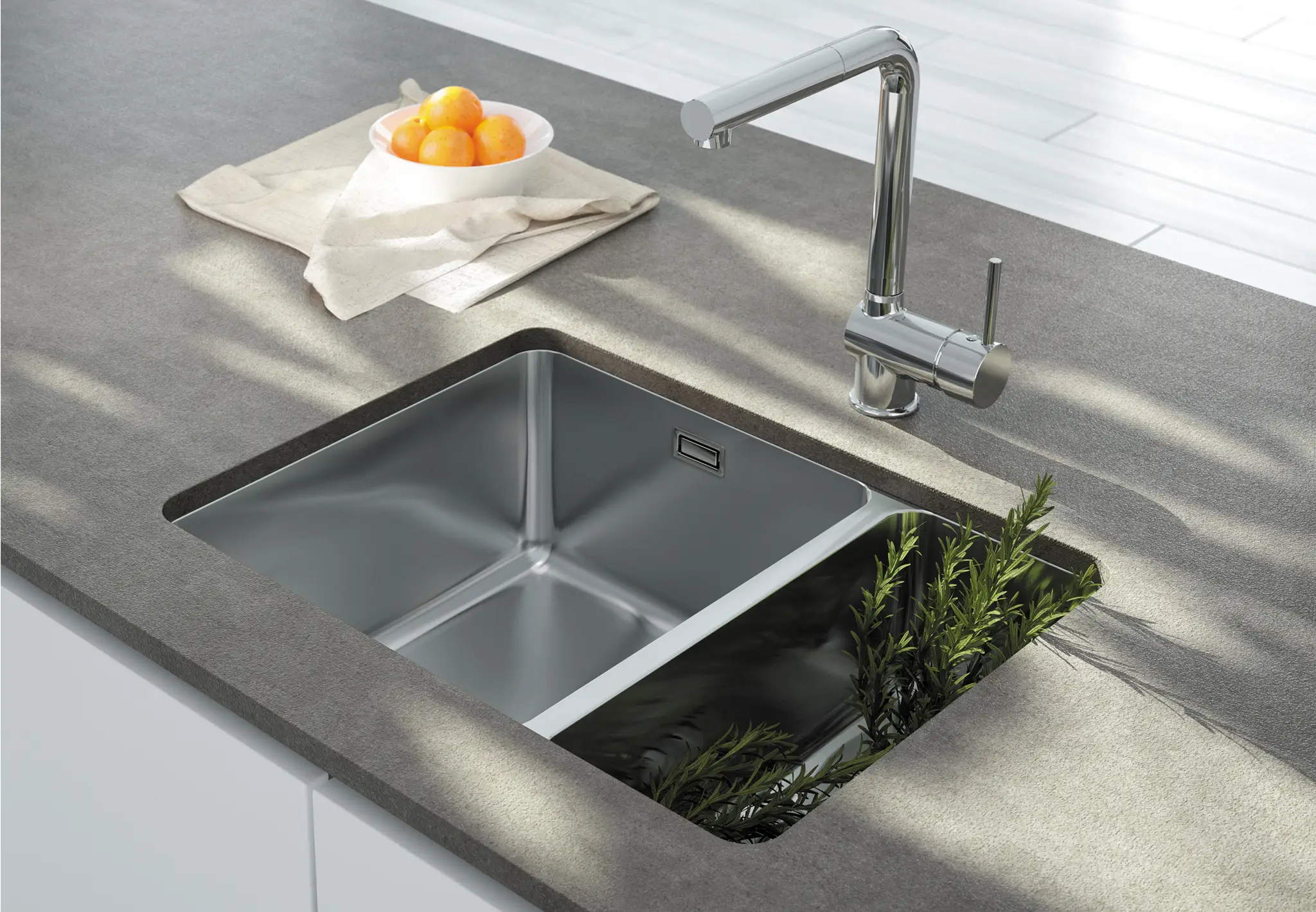 Wygodny półtorakomorowy zlew marki Deante wykonany jest ze stali, która posiada właściwości antyseptyczne. Mniejsza komora świetnie sprawdzi się do mycia warzyw lub owoców lub rozmrażania. Satynowe wykończenie zapewnia elegancki i estetyczny wygląd kuchni.