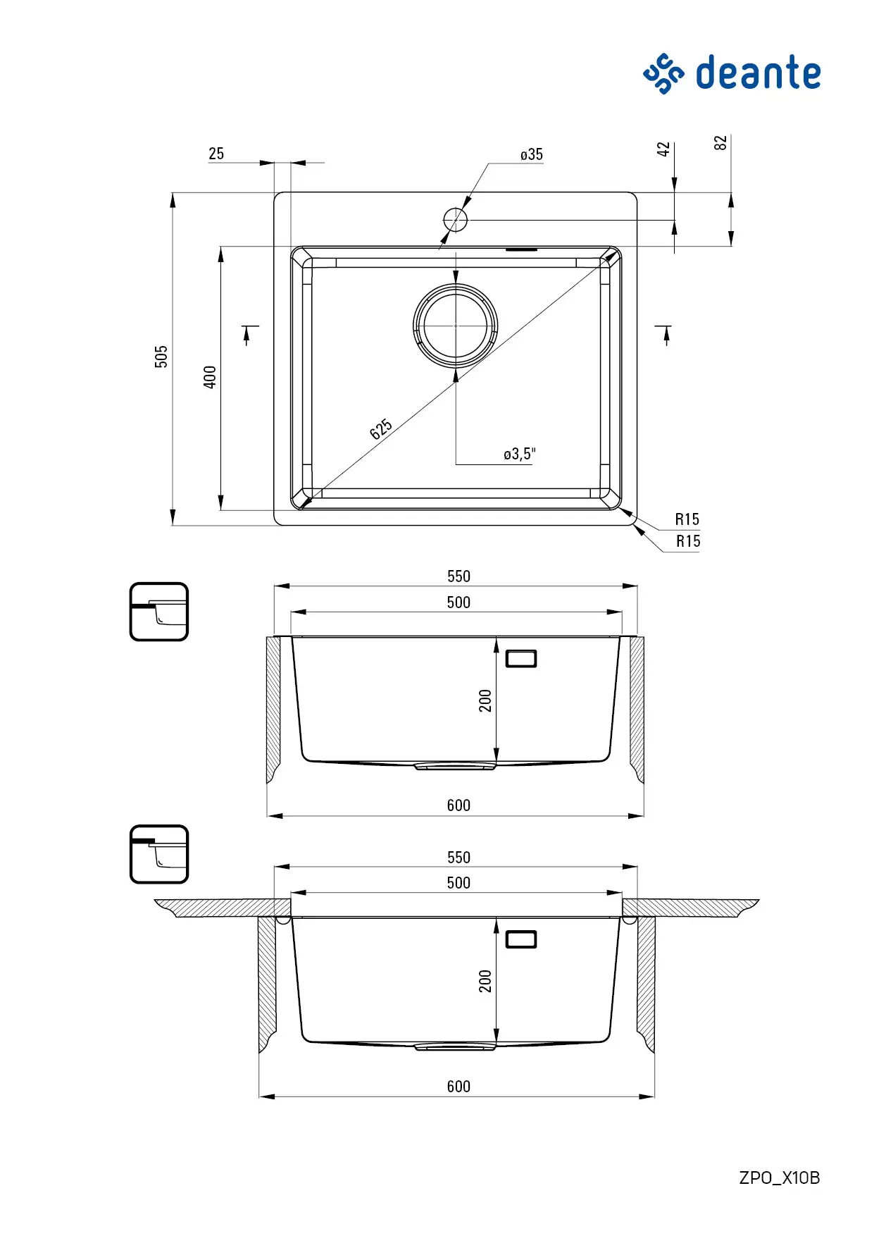Deante - Zlewozmywak stalowy OLFATO 1-komorowy 55x50,5 cm stal szczotkowana