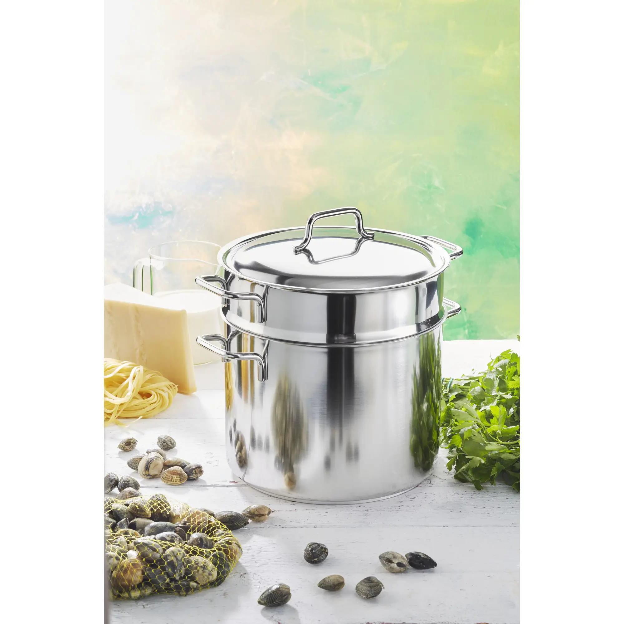 Garnek niski z pokrywką Apollo 3 L wykonany został z zastosowaniem szlachetnej stali nierdzewnej, poddanej unikalnemu procesowi technologicznemu Silvinox®. Jest to opatentowany wynalazek firmy Demeyere, dzięki któremu naczynia odporne są na przypalenia i przebarwienia, które bardzo często zdarzają się podczas użytkowania stalowych naczyń na kuchniach gazowych. Naczynia Demeyre zawsze pozostają błyszczące. Siedmiowarstwowe dno Inducto Base® posiada wbudowany aluminiowy rdzeń, który zapewnia idealne rozprowadzenie temperatury nie tylko na środku, ale również przy ściankach naczynia. Garnek ten posiada idealnie dopasowaną pokrywkę oraz wygodne uchwyty.