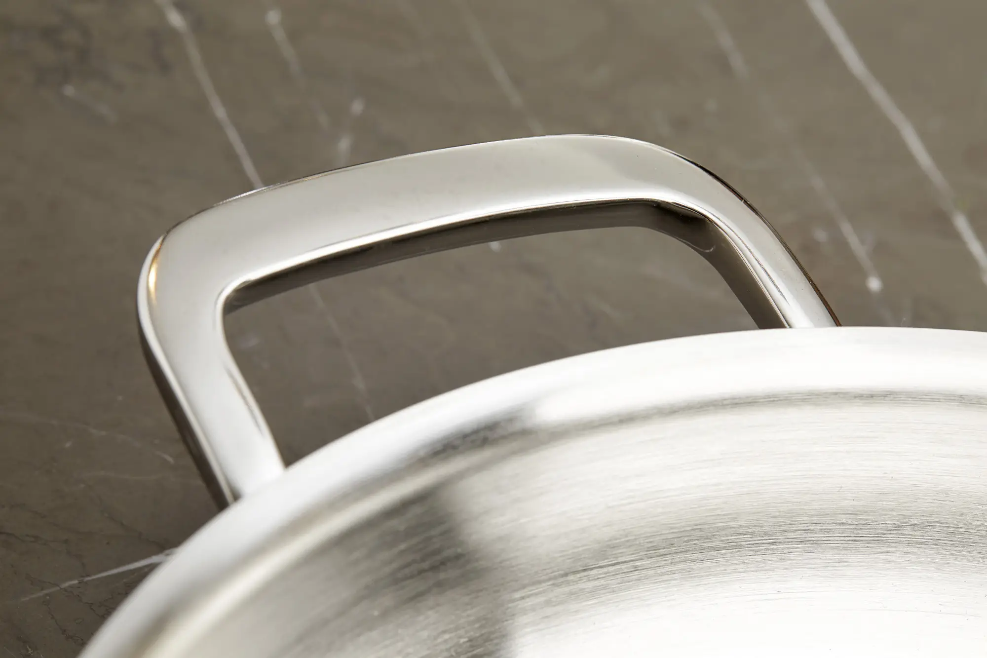 Prezentowana głęboka patelnia z linii Multifunction doskonale sprawdzi się do przygotowywania smażonych ziemniaczków, rustykalnych steków i rozmaitych warzyw. Naczynie ma średnicę 24 cm i wykonane zostało z siedmiowarstwowego materiału, łączącego szlachetną stal z aluminiowym rdzeniem. Sprawia to, że ciepło jest szybko i równomiernie rozprowadzane na całej powierzchni nawet w przypadku małych palników. Zakrzywiona krawędź naczynia pozwala z kolei na bezproblemowe odlanie zbędnego tłuszczu czy przelanie sosu do innego naczynia. Patelnia posiada dwa poręczne, stabilne i higieniczne spawane uchwyty zapewniające pewny chwyt. Specjalna, łatwa w pielęgnacji powłoka Silvinox odpowiada za srebrzysty połysk i zapobiega przebarwieniom. Naczynie nadaje się do piekarnika (do 230°C) i wszystkich rodzajów kuchenek, szczególnie indukcyjnych (technologia TriplInduc zwiększa jego wydajność do maksimum). Patelnię można myć w zmywarce.