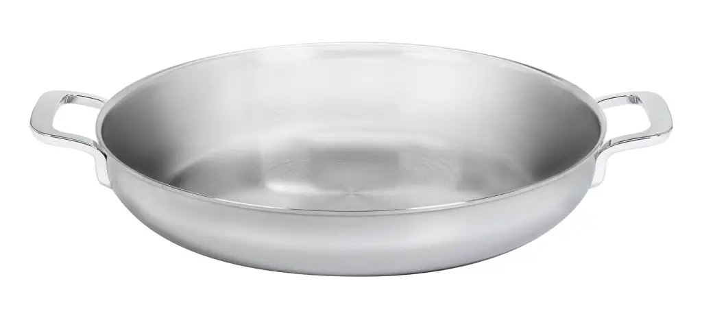 Prezentowana głęboka patelnia z linii Multifunction doskonale sprawdzi się do przygotowywania smażonych ziemniaczków, rustykalnych steków i rozmaitych warzyw. Naczynie ma średnicę 28 cm i wykonane zostało z siedmiowarstwowego materiału, łączącego szlachetną stal z aluminiowym rdzeniem. Sprawia to, że ciepło jest szybko i równomiernie rozprowadzane na całej powierzchni nawet w przypadku małych palników. Zakrzywiona krawędź naczynia pozwala z kolei na bezproblemowe odlanie zbędnego tłuszczu czy przelanie sosu do innego naczynia. Patelnia posiada dwa poręczne, stabilne i higieniczne spawane uchwyty zapewniające pewny chwyt. Specjalna, łatwa w pielęgnacji powłoka Silvinox odpowiada za srebrzysty połysk i zapobiega przebarwieniom. Naczynie nadaje się do piekarnika (do 230°C) i wszystkich rodzajów kuchenek, szczególnie indukcyjnych (technologia TriplInduc zwiększa jego wydajność do maksimum). Patelnię można myć w zmywarce.