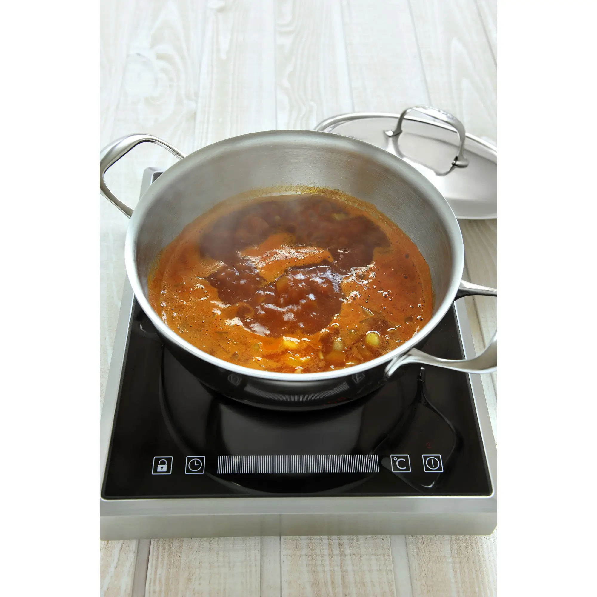 Patelnia sauté z pokrywką Atlantis 28 cm wykonana została ze stali szlachetnej, podanej procesowi wykończenia Silvinox®. Metoda ta uodparnia ona naczynia na przebarwienia termiczne. Masywna podstawa Inducto Seal® z wbudowanym aluminiowo - miedzianym rdzeniem gwarantuje równomiernie rozgrzewanie się naczynia na całej powierzchni. Poręczne, wyprofilowane uchwyty zapewniają komfortowe użytkowanie. Stalowa pokrywka idealnie przylega do naczynia.