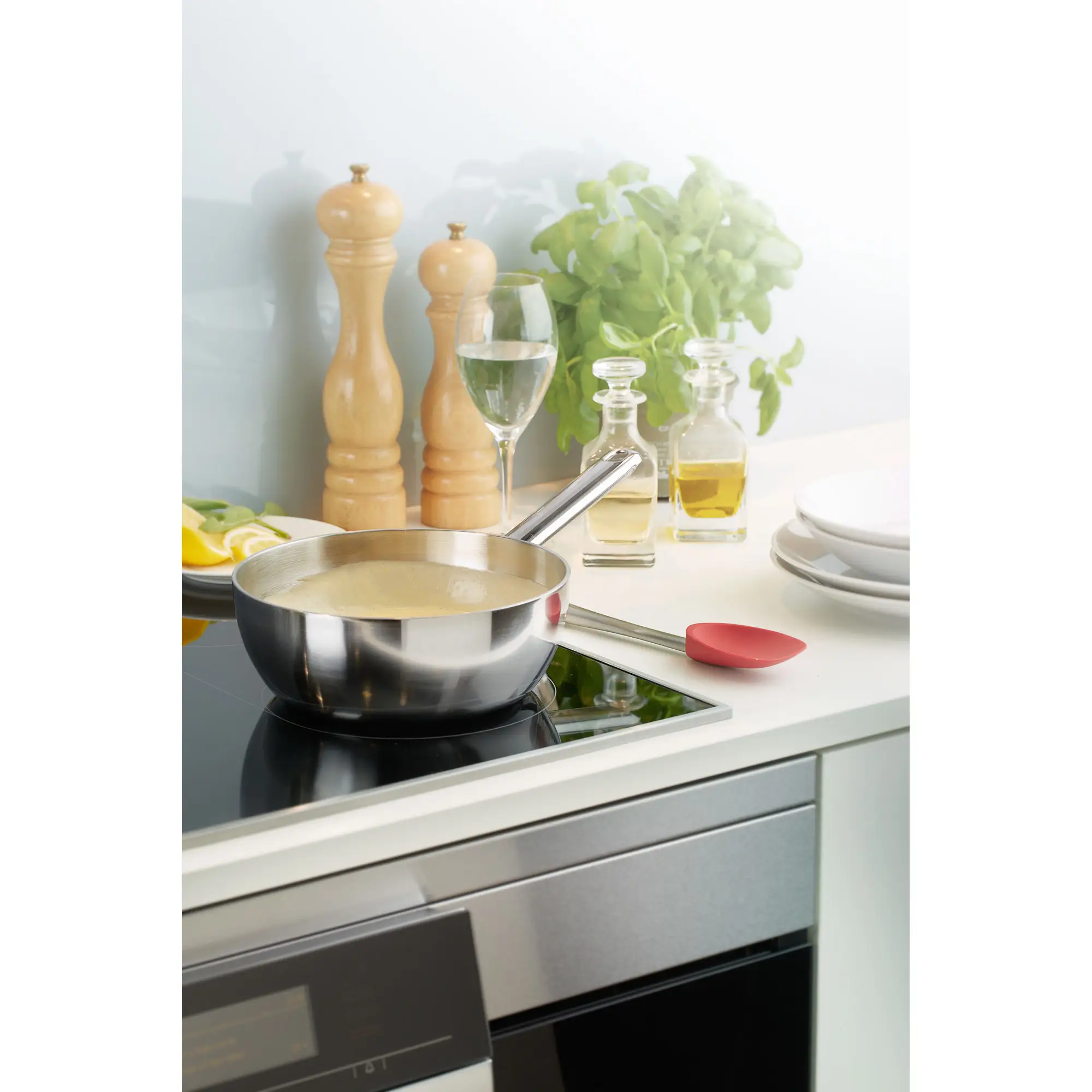 To niezwykle funkcjonalne naczynie doskonale sprawdzi się w roli garnka pomocniczego, który świetnie wspomoże nas przy przyrządzaniu składników bardziej złożonych dań czy deserów. Z jego pomocą roztopimy masło i przyrządzimy sosy lub kremy. Jest to jeden z produktów najnowszej serii marki Demeyere - słynnego producenta stalowych naczyń kuchennych.