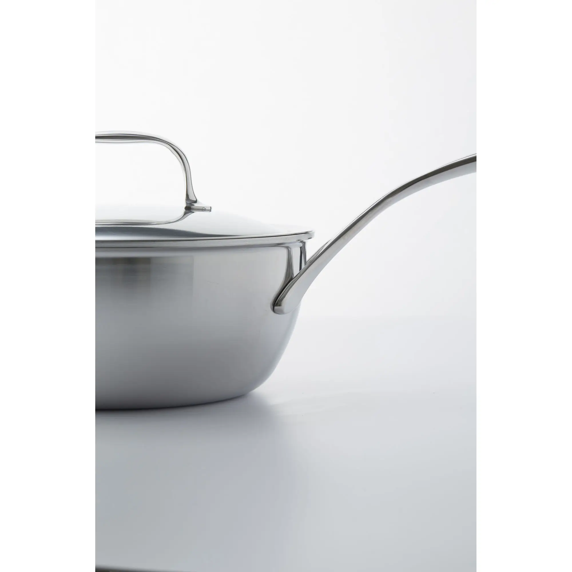 Wykonany został ze szlachetnej stali nierdzewnej, podanej wykończeniu według technologii Silvinox®. Metoda ta została wynaleziona i opatentowana przez firmę Demeyere. Dzięki niej naczynia odporne są na przebarwienia termiczne. Masywna podstawa Inducto Seal® posiada wbudowany aluminiowo - miedziany rdzeń, dzięki któremu ciepło przemieszcza się równomiernie po całej powierzchni naczynia. Poręczne uchwyty gwarantują bezpieczne użytkowanie. Naczynie to nadaje się na każde źródło ciepła, łącznie z kuchenką indukcyjną. Produkt nadaje się do mycia w zmywarce.