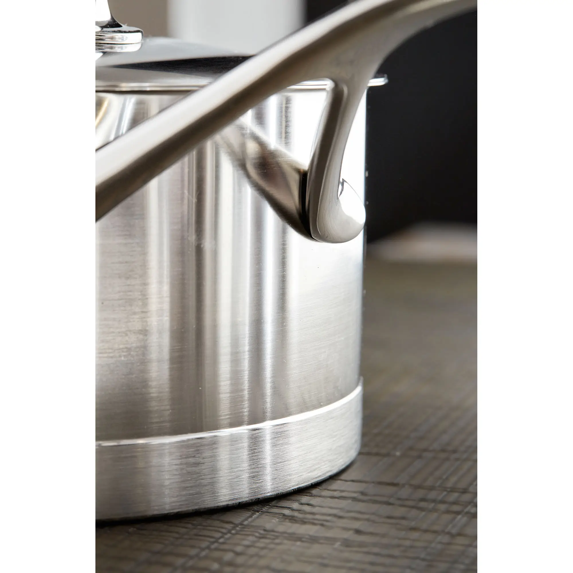 Rondelek z pokrywką Atlantis 1,5 L wykonany został z najwyższej jakości stali szlachetnej, odpornej na korozję, poddanej unikalnej metodzie wykończenia Silvinox®. Zapobiega ona odbarwianiu się od intensywnego płomienia kuchenki gazowej. Masywna, czterowarstwowa podstawa Inducto Seal z wbudowanym aluminiowo - miedzianym rdzeniem zapewnia równomierne rozprowadzanie temperatury na całej powierzchni rondla. Poręczny uchwyt gwarantuje komfortowe i bezpieczne użytkowanie. Rondelek nadaje się na każdy rodzaj kuchenki, łącznie z indukcyjną.