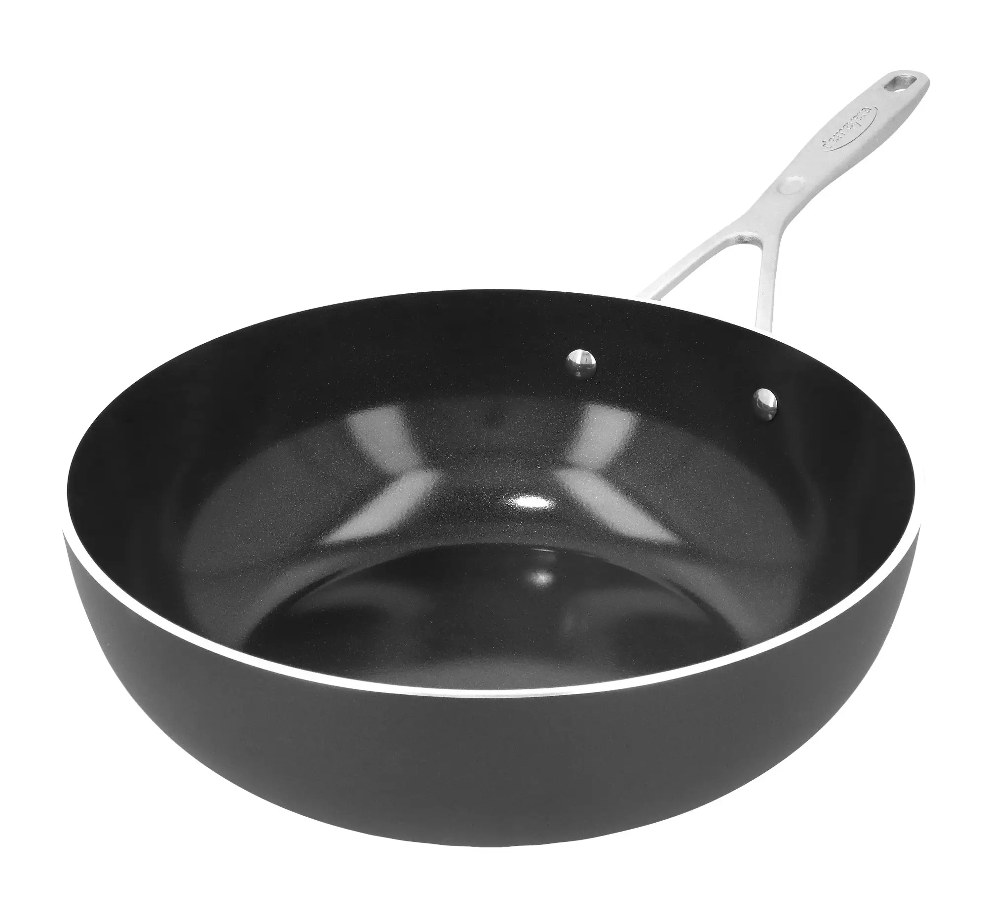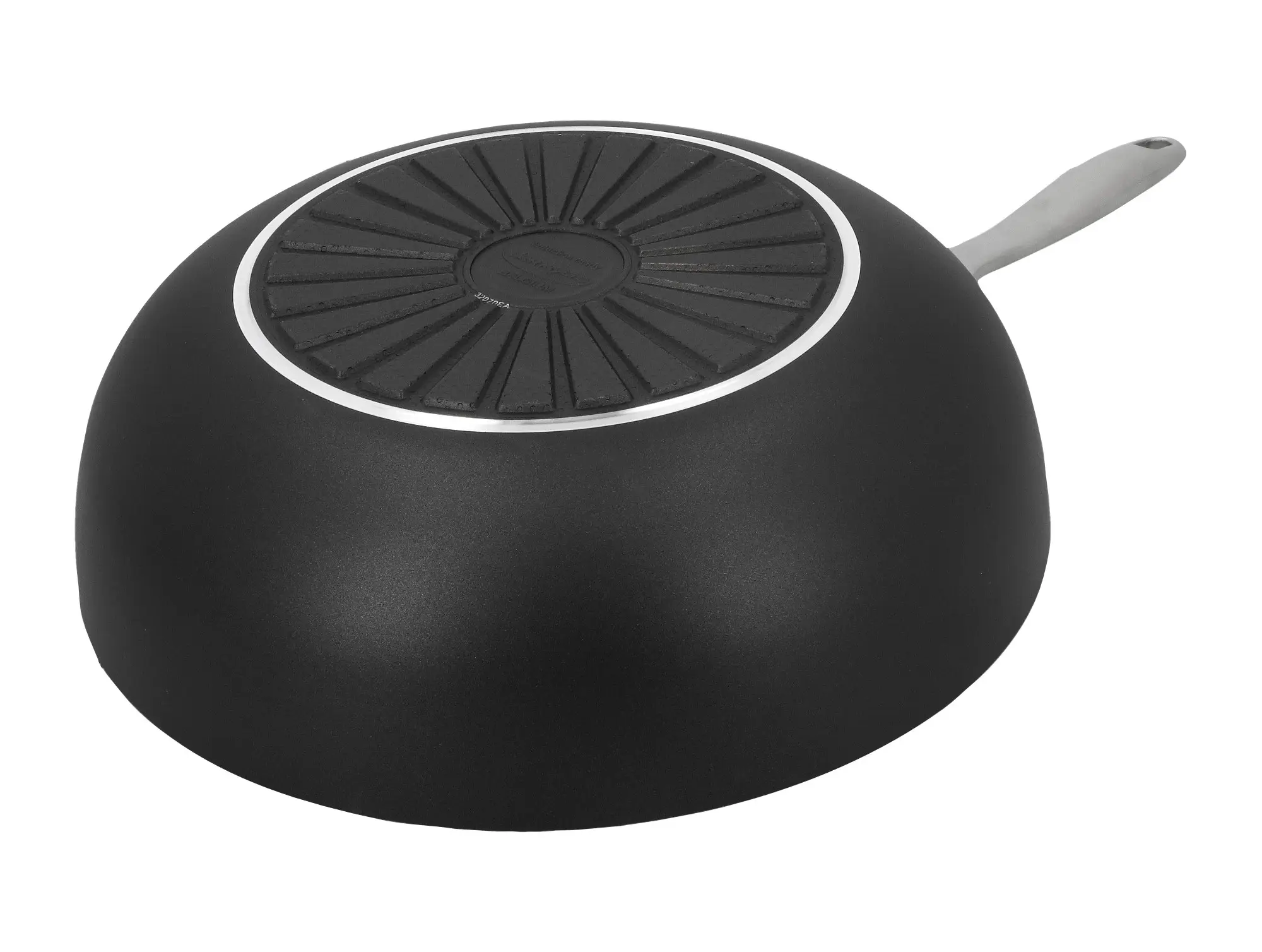 Prezentowany wok o średnicy 28 cm z wolną od PTFE powłoką ceramiczną Ceraforce® doskonale sprawdzi się do przygotowywania m.in. dań typu stir-fry. Jego wykonana z kutego aluminium konstrukcja jest gruba i wytrzymała, co przy prawidłowym używaniu przekłada się na funkcjonalność trwającą lata oraz wygodę pracy. Płaskie unikalne dno Radiant® zwiększa stabilność i zapewnia optymalny kontakt z płytami kuchennymi. Dodatkowo błyskawicznie reaguje na zmiany ustawień temperatury oraz sprawia, że ciepło jest szybko i równomiernie rozprowadzane. Ergonomiczna rączka z nitami ze stali nierdzewnej umożliwia wygodne manewrowanie wokiem oraz zapewnia większe bezpieczeństwo podczas używania. Naczynia można używać na wszystkich rodzajach kuchenek. Dodatkową zaletą produktu jest możliwość używania w piekarniku - odporny na temperaturę do 230°C. Mimo że dostosowany został do mycia w zmywarce, by zapewnić długą żywotność zaleca się czyszczenie ręczne. Aby zapobiec niepożądanym uszkodzeniom, w kontakcie z jego powierzchnią należy używać wyłącznie akcesoriów wykonanych z drewna lub silikonu.