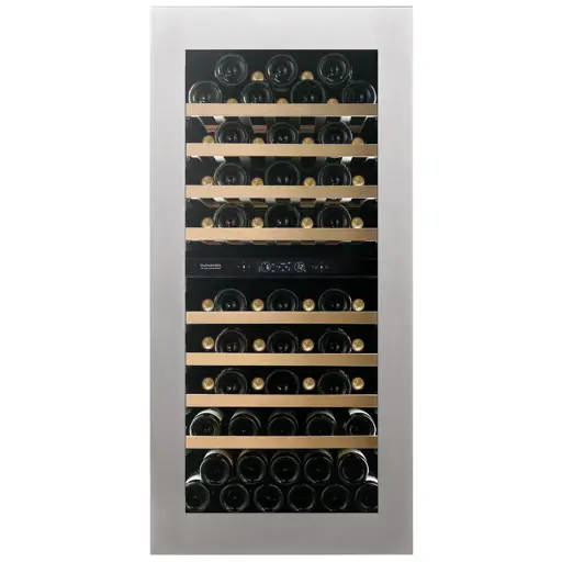 Model DUNAVOX Flow-19 pasuje idealnie do nowoczesnej kuchni. Butelki spoczywają na solidnych drewnianych półkach w oszałamiającym, jasnobiałym wnętrzu. Należy zwrócić uwagę, że model ten jest przeznaczony do zabudowy podblatowej.