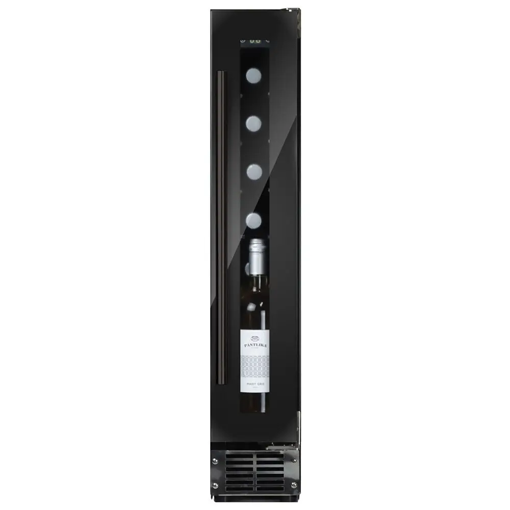 Elegancki wygląd i uchwyt drzwiczek wykonany ze stali nierdzewnej nadają mu wyjątkowo reprezentacyjny charakter w nowoczesnych kuchniach o ograniczonej przestrzeni. Butelki są umieszczone na stałych półkach w oszałamiającym, jasnobiałym wnętrzu. Należy