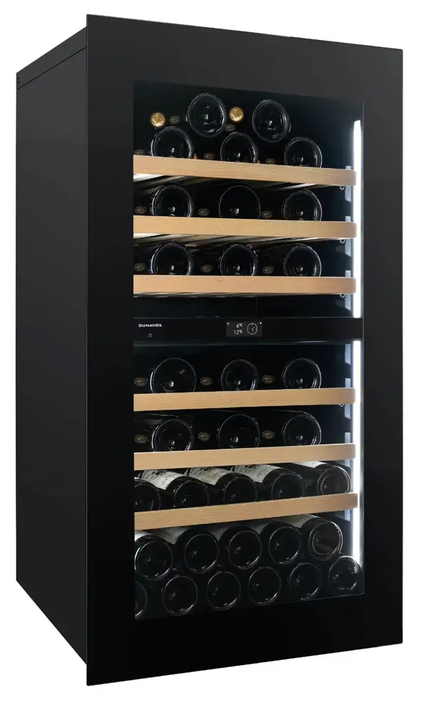 Chłodziarka do wina Noble-56 w kolorze czarnym mieści do 72 butelek. Jest to ekskluzywny, w pełni zintegrowany model do zabudowy z technologią push-2-open, zintegrowaną wentylacją, ochroną przed światłem UV i dotykowym ekranem TFT. Elegancki wygląd i wielokolorowe oświetlenie LED nadaje chłodziarce wyjątkowo reprezentacyjny charakter w nowoczesnych kuchniach. Półki wewnątrz są tak rozmieszczone aby umożliwić łatwe odczytanie etykiet. Produkt nadaje się również do przechowywania szampana.