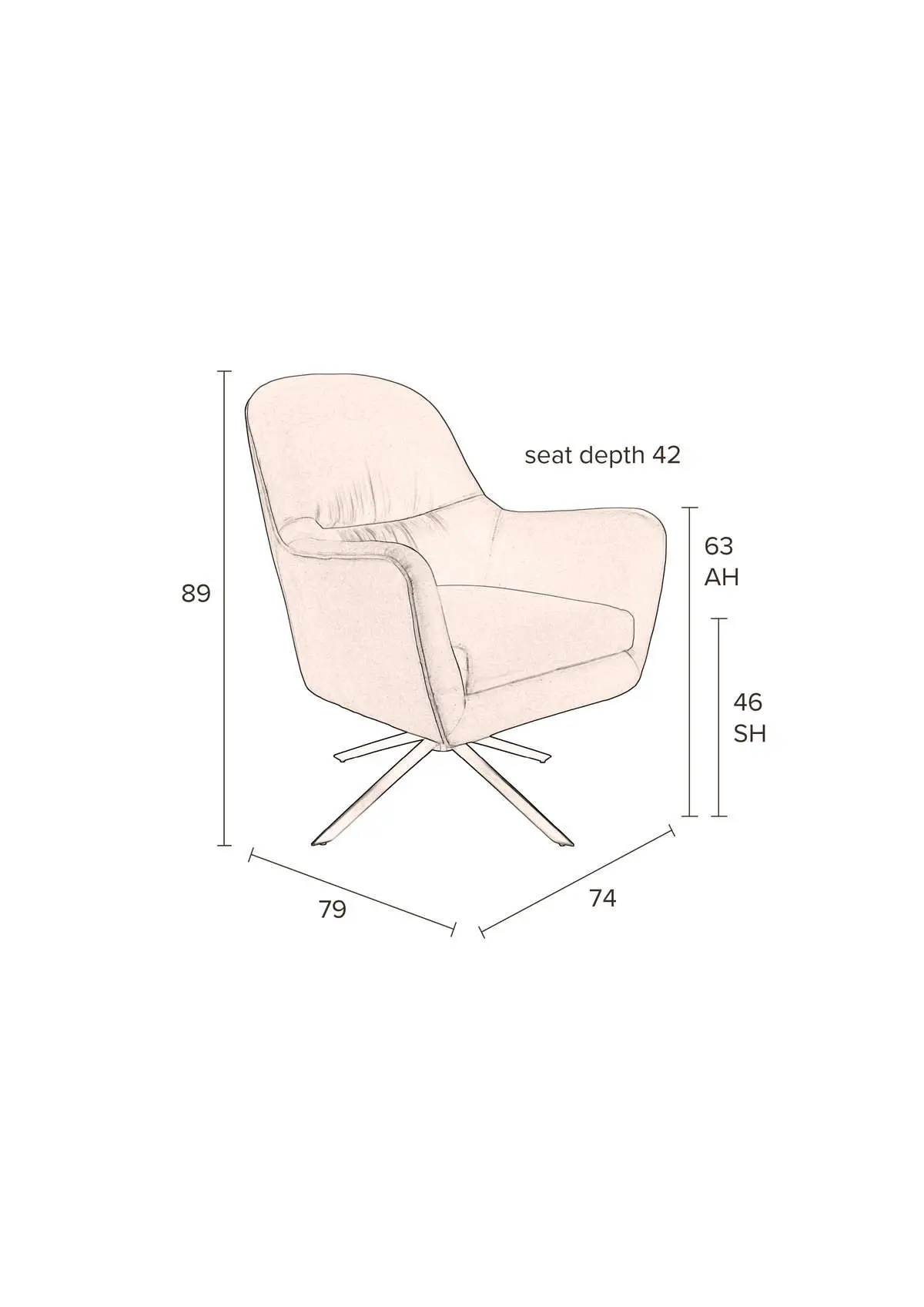 - Głębokość siedzenia: 42 cm