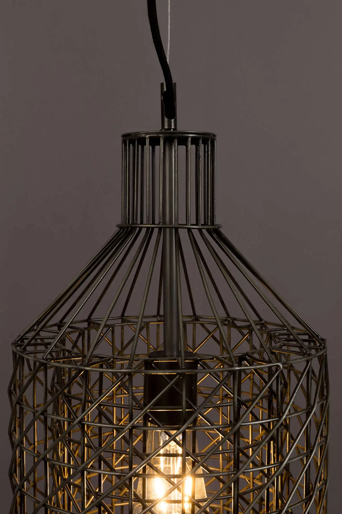 Lampa Jim holenderskiego producenta Dutchbone w wysokiej wersji doskonale spełni swoje zadanie, a także będzie niebanalną ozdobą pomieszczenia. Efektowna budowa lampy, klatkowa konstrukcja wykonana z żelaza, sprawia, że blask światła roztacza wokół siebie interesujące cienie co wprowadzi niesamowitą atmosferę. Obsługa klasycznego gniazda żarówkowego E27 sprawi, że znalezienie odpowiedniej żarówki nie będzie stanowiło żadnego wyzwania. Lampa Jim jest idealnym wyborem, jeśli chcesz powiesić na sufit coś innego niż to, co możesz zobaczyć w każdym innym domu.