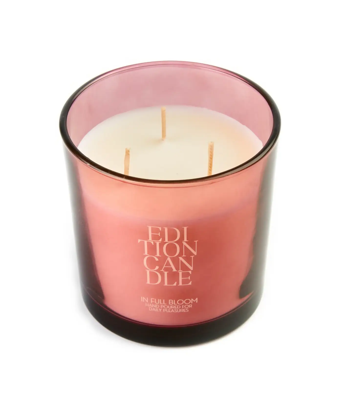 Prezentowana świeca 340 g o wymiarach 10 x 10,5 cm (śr. x wys.) jest częścią edycji Edition Signature Purple (ESP) w stylu Modern Retro. Edycję tą charakteryzują owocowo-kwiatowe zapachy i różowy kolor. Świeca wykonana została ręcznie z wosku sojowego i bawełny (trzy knoty). Jej eleganckie, minimalistycznie zdobione opakowanie zrobiono natomiast ze szkła (pojemnik), drewna bukowego i silikonu (wieczko). Produkt wyróżnia się francuską kompozycją zapachową In Full Bloom o wysokim stężeniu w blendzie, którą tworzą: nuty głowy (rabarbar, malina, różowy grejpfrut), nuty serca (róża, lilia, liście czarnej porzeczki, peonia) oraz nuty bazowe (piżmo, drzewo sandałowe, wanilia). Czas palenia świecy wynosi maksymalnie 42 godziny.