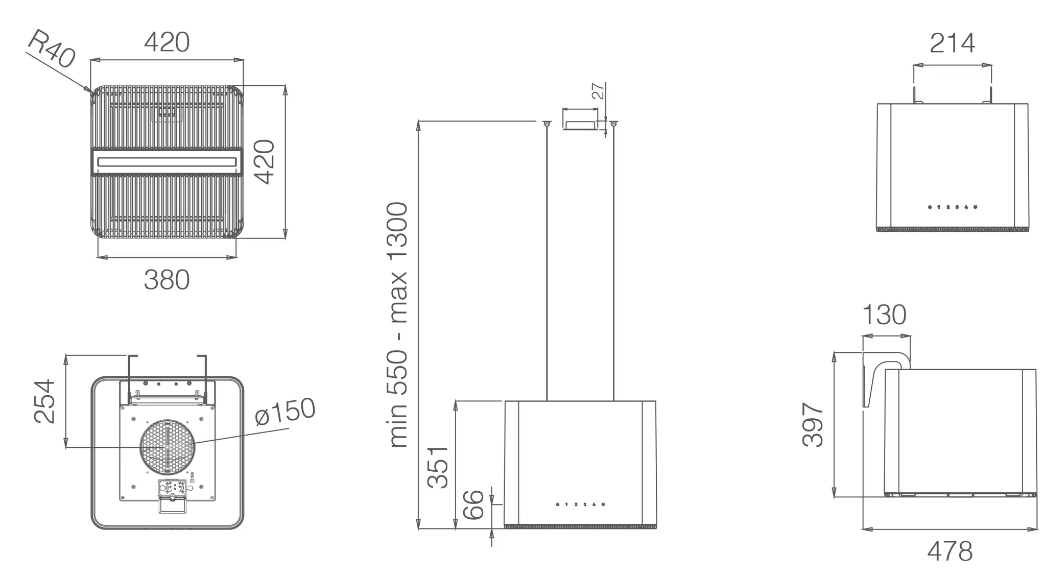 Szerokiej palecie wersji wykończenia towarzyszą super funkcjonalne detale: aluminiowe kratki zapewniają najwyższą wydajność wychwytywania i cichą pracę; system otwierania ułatwia czyszczenie, konserwację i wyjmowanie filtrów; panel LED doskonale oświetla płytę grzewczą; jest wyposażony w dotykowe elementy sterujące.