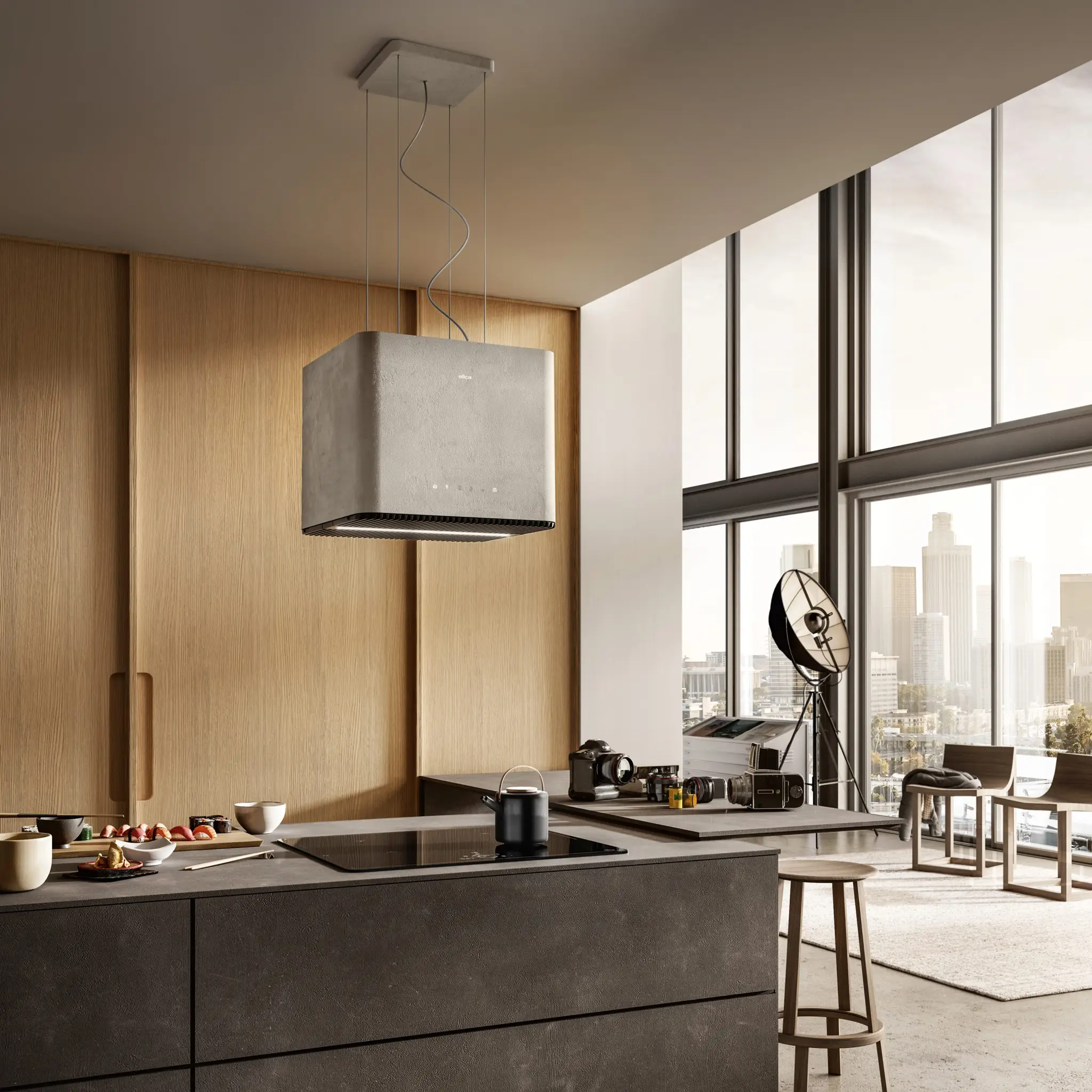 Okap wyspowy Elica PIX to nowoczesne i stylowe urządzenie, które łączy industrialny design z zaawansowaną technologią, idealnie komponując się z kuchniami urządzonymi w surowym, loftowym stylu. Jego minimalistyczna forma oraz nietypowa faktura przypominająca beton stanowią oryginalny element dekoracyjny w każdej kuchni z wyspą.