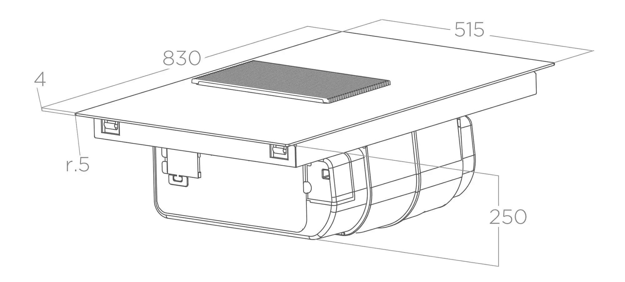 Funkcjonalny design. Płyta indukcyjna ze zintegrowanym pochłanianiem łączy estetykę z bogatą funkcjonalnością. Cztery niezależne strefy gotowania i ruszt w centralnej części: W tym miejscu skrywa się zintegrowany super okap, który automatycznie reguluje intensywność włączania i intensywność pochłaniania. Filtry pochłaniają wszelkie dymy, opary i zapachy. Można je z łatwością wyjąć w celu czyszczenia i regeneracji. Specjalny zawór umożliwia odprowadzanie rozlanych płynów, gwarantując tym samym najwyższą higienę.