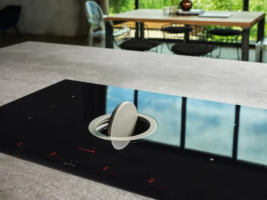 NikolaTesla Switch to nowoczesna płyta indukcyjna z ukrytym systemem wyciągowym, który aktywuje się jednym prostym gestem. Zaprojektowana przez Fabrizio Crisà, charakteryzuje się eleganckim wyglądem i doskonałą funkcjonalnością.