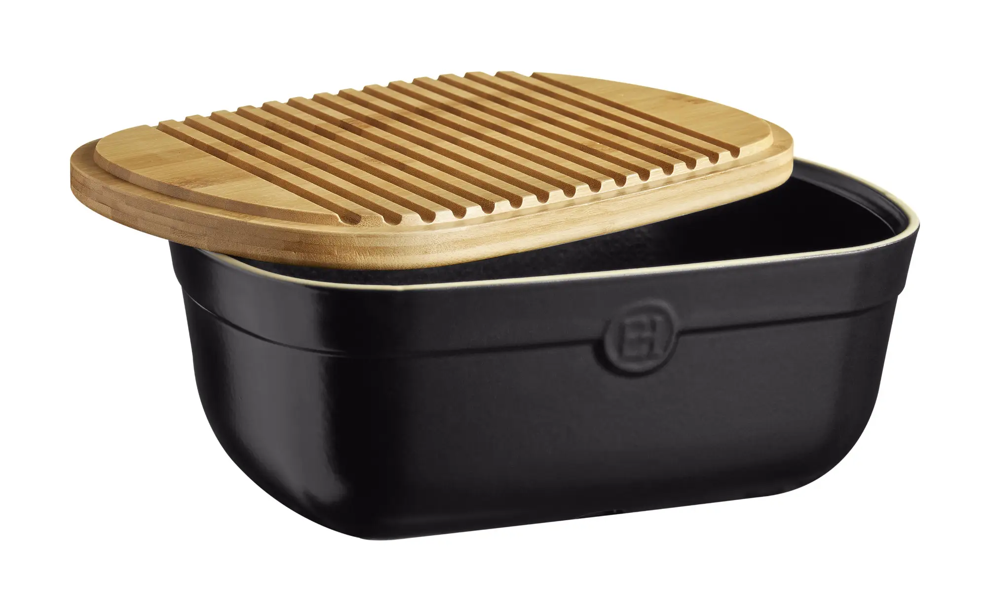 Prezentowany unikalnie wyglądający chlebak w kolorze truflowym idealnie nada się do przechowywania pieczywa na blacie kuchennym. Ma on wymiary 35,5 x 24,5 x 15,8 cm (dł. x szer. x wys.) i pojemność 6,5 L i wykonano go z naturalnych materiałów: szkliwionej ceramiki HR® (High Resistance) i olejowanego drewna bukowego, które aktywnie regulują poziom wilgotności i zapewniają idealne warunki przechowywania pieczywa, aby bułki i chleb zachowały świeżość jak najdłużej. Dołączona w komplecie pokrywka ma dodatkowe zastosowanie: odwrócona do góry nogami umożliwia krojenie pieczywa - jej rowki zatrzymają okruchy, pozwalając utrzymać kuchenny blat w czystości. Aby ułatwić czyszczenie ceramiczną część można myć w zmywarce. Pokrywę należy czyścić wilgotnym ręcznikiem.