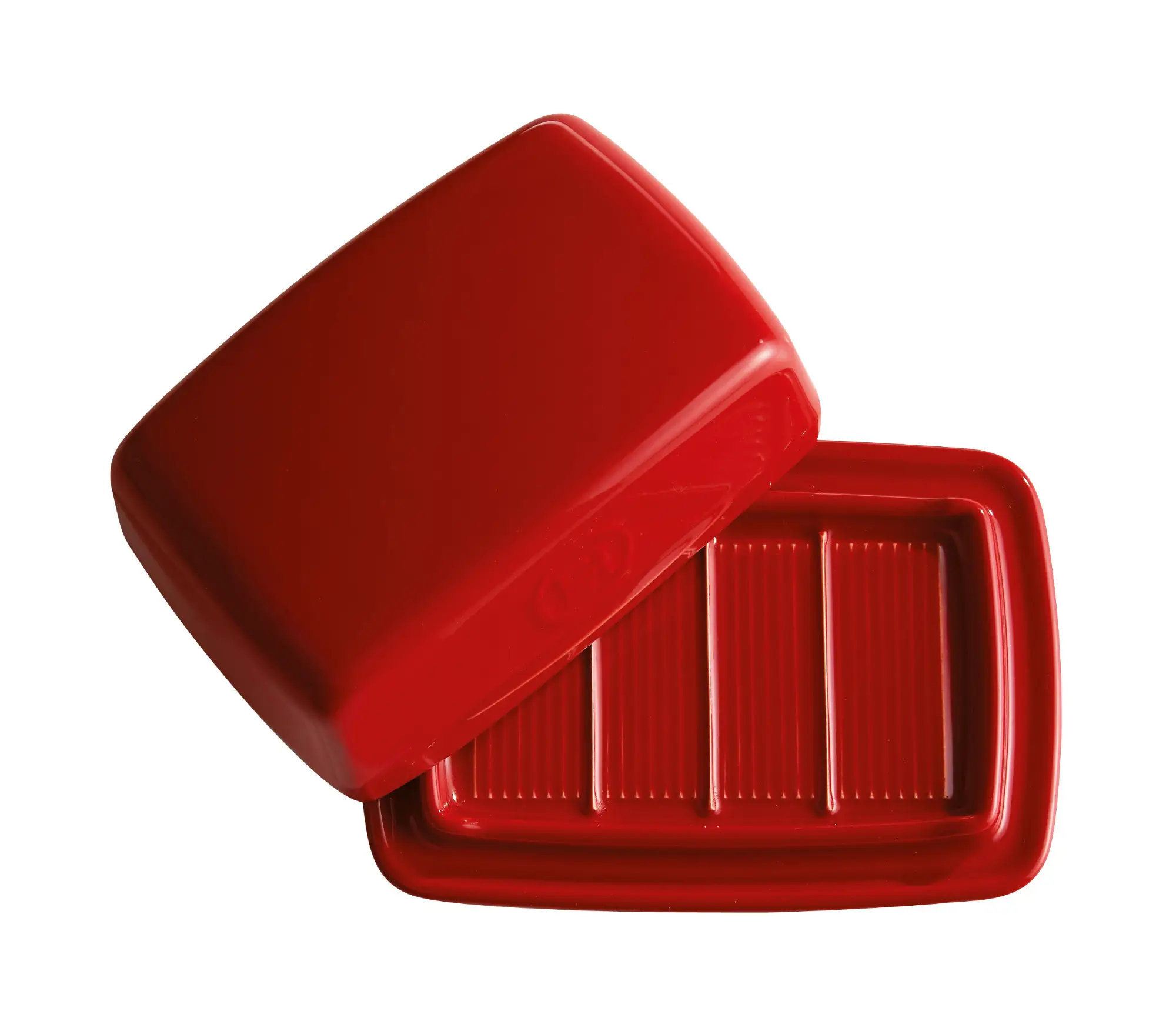 Prezentowana maselniczka o wymiarach 17 x 11,5 x 7,5 cm (dł. x szer. x wys.) i pojemności 400 ml idealnie sprawdzi się do przechowywania i serwowania masła w kostce (pozwala na przechowywanie kostek o wadze do 250 g), chroniąc je przed światłem, powietrzem i zabrudzeniami. Wykonana została ona z ceramiki HR® Ceramic (High Resistance) i pokryta szkliwieniem w czerwonym kolorze. Materiał ten dłużej pozostaje chłodny, dzięki czemu nawet po wyjęciu z lodówki utrzymuje świeżość masła. Maselniczka posiada wypukłości na dnie zapobiegające przesuwaniu się masła podczas krojenia, co ułatwia używanie. Ponadto nie sprawi ona problemów w utrzymaniu w czystości - nadaje się do mycia ręcznego i w zmywarce.