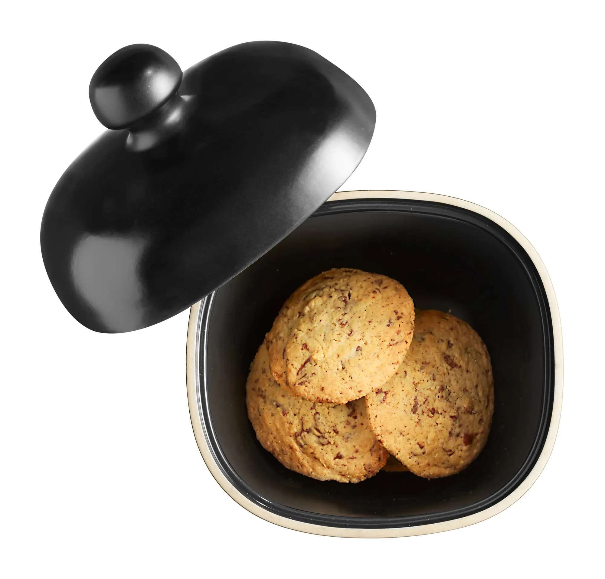 Prezentowany słoik kuchenny w kolorze truflowym idealnie nada się do przechowywania ciasteczek, drobnych wypieków i innych przekąsek, dzięki ponadczasowemu designowi estetycznie wyglądając na blacie lub w szafce. Ma on wymiary 21 x 19 x 25 cm (dł. x szer. x wys.) i pojemność 2,45 L. Słoik wykonany został z ceramiki HR® (High Resistance), która nie chłonie zapachów. Dołączona w komplecie dopasowana pokrywka z uchwytem zapobiega gromadzeniu się wilgoci i nie dopuszcza do zwietrzenia, przez co przechowywana żywność na dłużej zachowa świeżość. Szeroki otwór ułatwia sięganie do wnętrza słoika oraz opróżnianie słoika z okruszków. Dla ułatwienia czyszczenia produkt nadaje się do mycia w zmywarce.