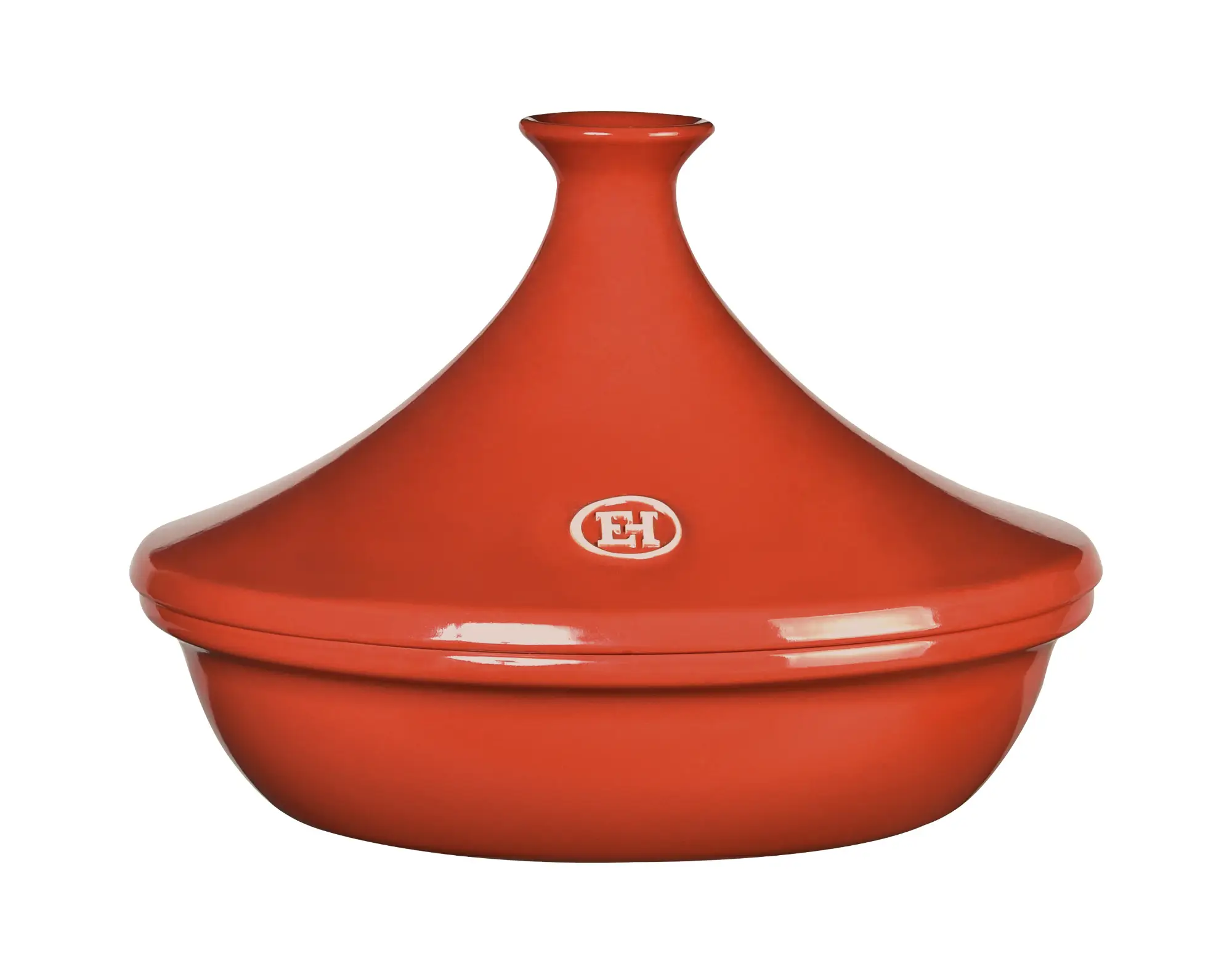 Prezentowane naczynie tagine o wymiarach 27,5 x 20 cm (śr. x wys.) i pojemności 1,8 L wykonano z ogniotrwałej ceramiki Flame® i pokryto glazurą w czerwonym kolorze. Umożliwia ono przygotowanie pysznych tagines, gulaszu czy innych przepisów, które wymagają gotowania na wolnym ogniu, dzięki właściwościom materiału wydobywając każdy smak potrawy. Naczynie wyposażono w pokrywkę o unikalnym kształcie, pozwalającą na cyrkulację pary i pomagającą zachować delikatność i wilgotność składników. Produkt może być stosowany na wszystkich bezpośrednich źródłach ciepła: gazowych, elektrycznych, halogenowych lub z dyskiem indukcyjnym na płytach indukcyjnych oraz w piekarniku (do 290°C). Dla ułatwienia czyszczenia można go myć w zmywarce.