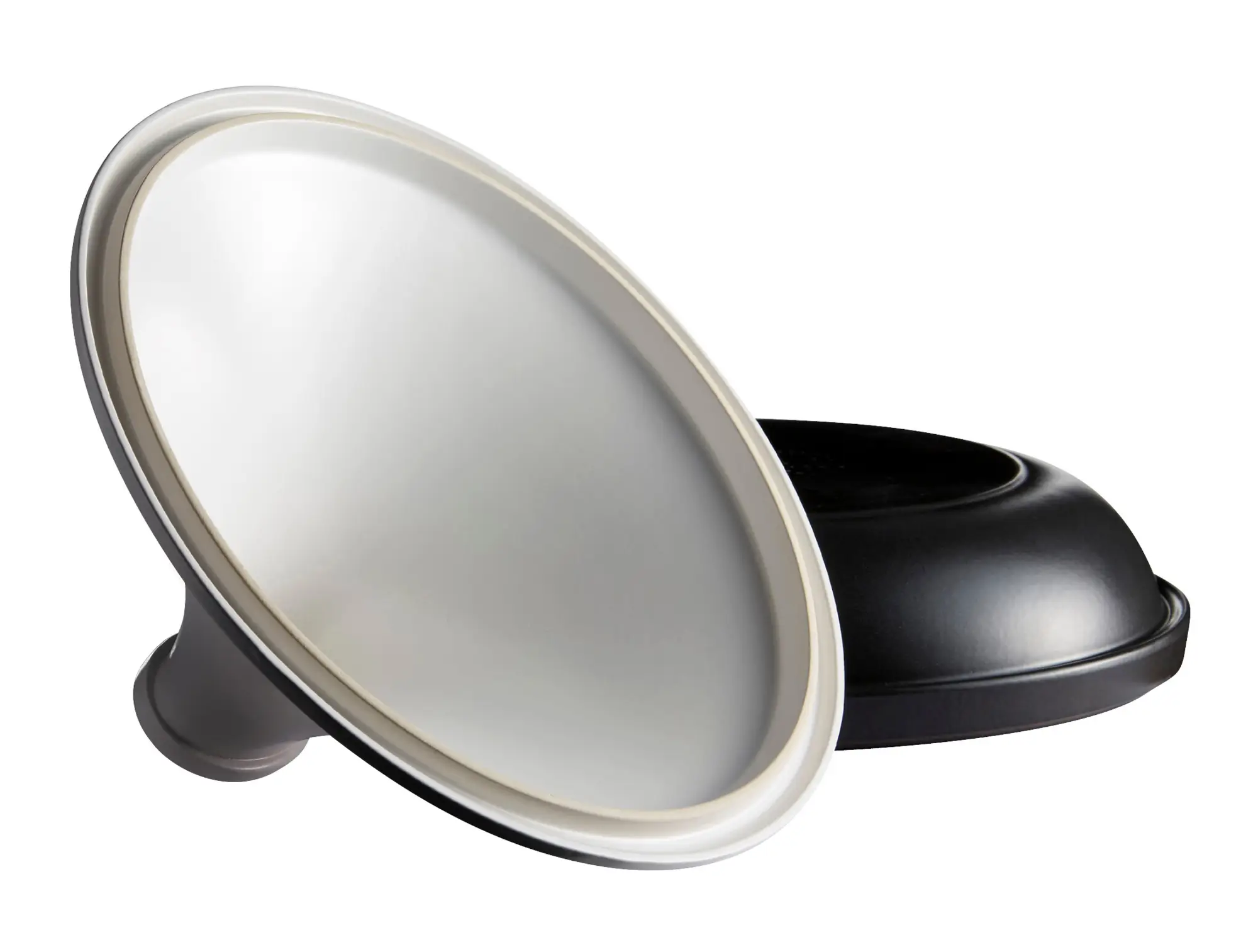 Prezentowane naczynie tagine o wymiarach 33,5 x 23 cm (śr. x wys.) i pojemności 4 L wykonano z innowacyjnej ceramiki i pokryto glazurą w biało-czarnym kolorze. Umożliwia ono przygotowanie pysznych tagines, gulaszu czy innych przepisów, które wymagają gotowania na wolnym ogniu, dzięki właściwościom materiału wydobywając każdy smak potrawy. Bardzo dobrze rozprowadza ciepło, a dzięki unikalnej pokrywce zapewnia ciągłą cyrkulację powietrza, zapewniając delikatne gotowanie na wolnym ogniu, co wydobywa maksimum smaku użytych składników. Naczynie może być stosowany na wszystkich bezpośrednich źródłach ciepła: gazowych, elektrycznych, halogenowych, indukcyjnych oraz w piekarniku (do 290°C). Dla ułatwienia czyszczenia można go myć w zmywarce.