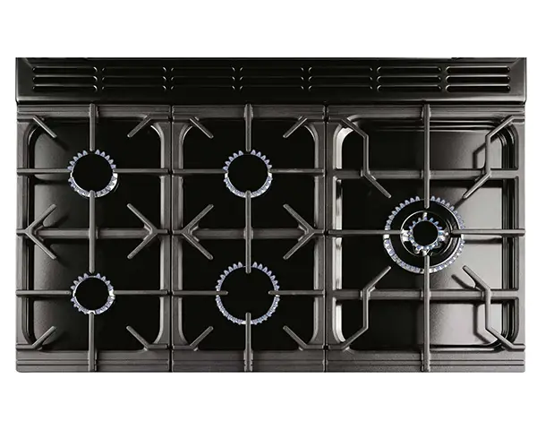 - Palnik 5: 3,50 kW (palnik WOK z podwójnymi pierścieniami)