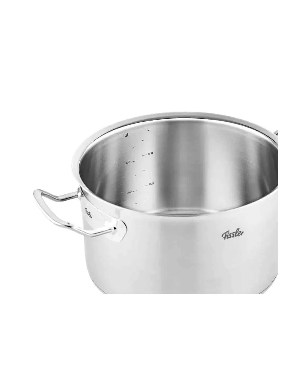 Garnek wysoki o dużej pojemności 6,3 litra marki Fissler to jeden z produktów z nowoczesnej kolekcji Orginal Profi Collection 2.0. Świetnie sprawdzi się do gotowania dań jednogarnkowych, zup, ziemniaków, makaronów i wielu innych potraw. Do garnka dołączona jest również pokrywa.