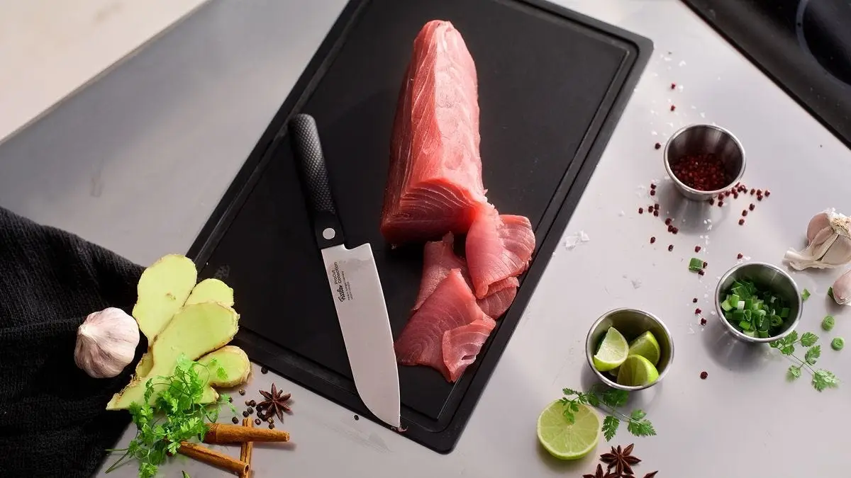 Nóż Santoku z serii ProCut marki Fissler o rozmiarze 17 cm, został wykonany przez rzemieślników w Solingen w Niemczech. Zachwyca niezwykłą twardością i ostrością ostrza HRC 59, gwarantując pewne, precyzyjne cięcia różnych produktów: mięsa, warzyw i ryb.