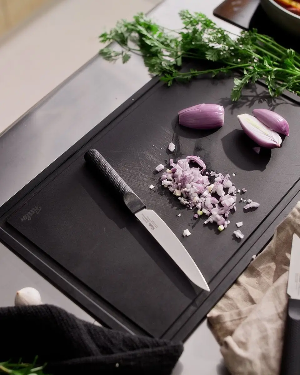 Nóż uniwersalny marki Fissler z serii ProCut o rozmiarze 14 cm, został wykonany przez rzemieślników w Solingen w Niemczech. Zachwyca niezwykłą twardością i ostrością ostrza HRC 59, gwarantując pewne, precyzyjne cięcia różnych produktów: cebuli, ziół czy drobiu.