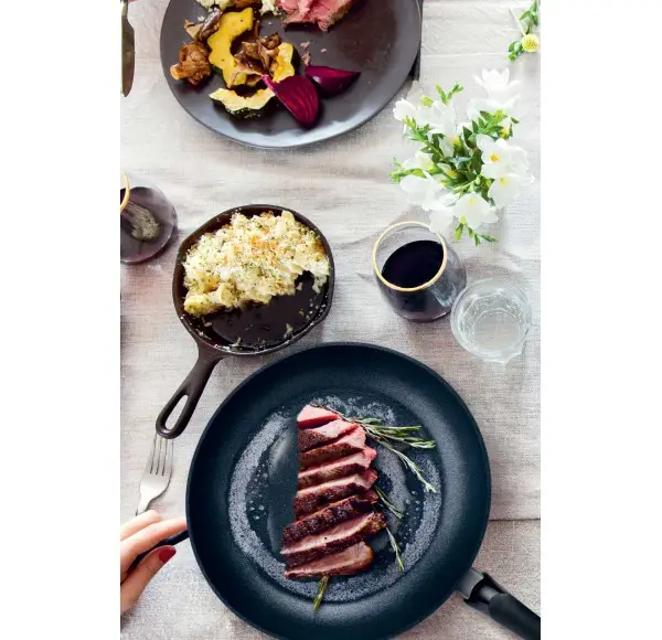 Patelnie Adamant Classic wyróżniają się ponadczasowym wzornictwem. Posiadają wygodny, ergonomiczny uchwyt z możliwością zamocowania szklanej pokrywy i osłony,zapobiegającej pryskaniu. Wnętrze patelni pokryte jest niezwykle twardą powłoką z cząsteczkami karborundu(węgliku krzemu). Dzięki temu możliwe jest używanie metalowych przyborów kuchennych bez ryzyka zarysowania. Patelnia doskonale rozprowadza ciepło, a powłoka zapobiega przywieraniu potraw. Nadaje się na każdy kuchenki, również indukcyjną.