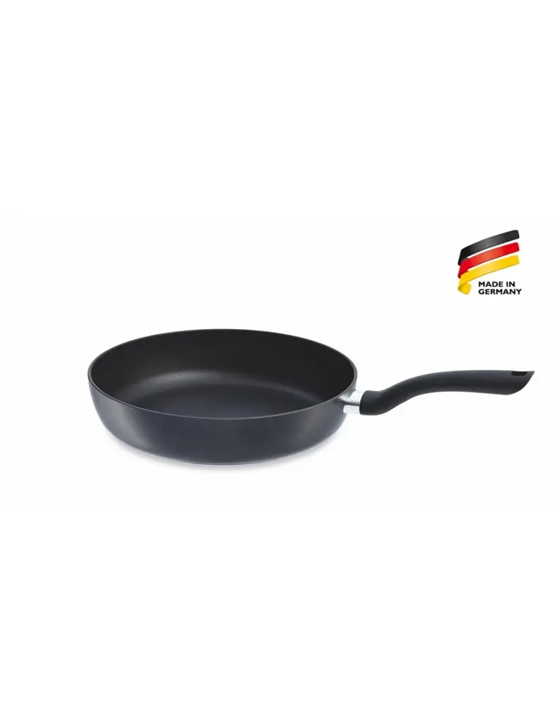 Patelnia Cenit o średnicy 24 cm marki Fissler jest idealna do codziennego użytku. Szkielet wykonany jest z wysokiej jakości aluminium. Posiada nieprzywierającą, 3-warstwową powłokę, która pozwala uzyskać dobre wyniki pieczenia. Patelnia posiada wygodny, ergonomiczny uchwyt. Można używać jej na kuchenkach elektrycznych, ceramicznych i gazowych.