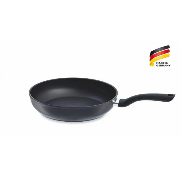 Patelnia wykonana jest z wysokiej jakości aluminium.Posiada wygodny,ergonomiczny uchwyt,dobrze leżący w dłoni. Wnętrze jej pokryte jest trójwarstwową powłoką zapobiegającą przywieraniu potraw. Pozwala ona podnieść efekty pieczenia w piekarniku.Patelnia dostosowana jest do wszystkich rodzajów kuchenek,także indukcyjnej.