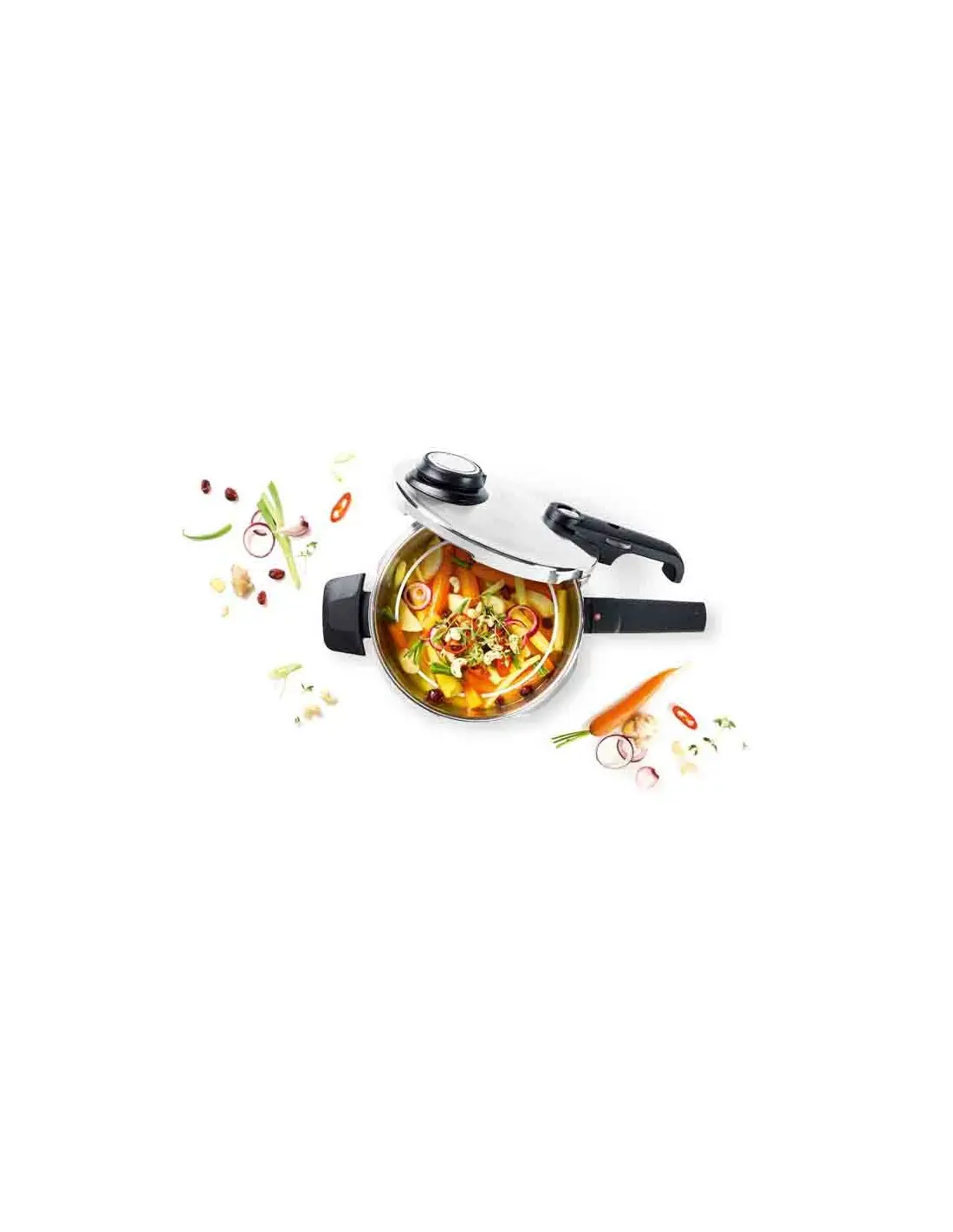 Szybkowar Vivavir Premium S4 to świetne rozwiązanie dla osób, które cenią sobie szybkie i zdrowe gotowanie posiłków. Ma 6 litrów pojemności, co pozwala na przygotowywanie kilku porcji dania jednocześnie. W porównaniu do tradycyjnego gotowania, w szybkowarze przygotujesz potrawy nawet o 70% szybciej. Zachowają one również nawet o 90% więcej składników odżywczych.