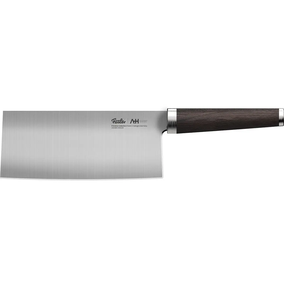 Tasak marki Fissler z serii PrimeCut o rozmiarze 18 cm, został wykonany przez rzemieślników z Solingen w Niemczech. Tasak zachwyca niezwykłą ostrością i twardością ostrza HRC 60, gwarantuje pewne, niezwykle precyzyjne cięcia każdego rodzaju ziół czy warzyw.