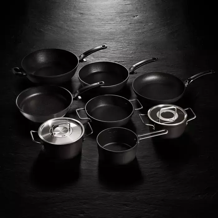 Każde z naczyń z tej serii posiada podstawę Cookstar® o grubości 8 mm, która zapewnia optymalną dystrybucję ciepła na wszystkich rodzajach kuchenek (w tym indukcyjnych). Patelnię można myć w zmywarce.