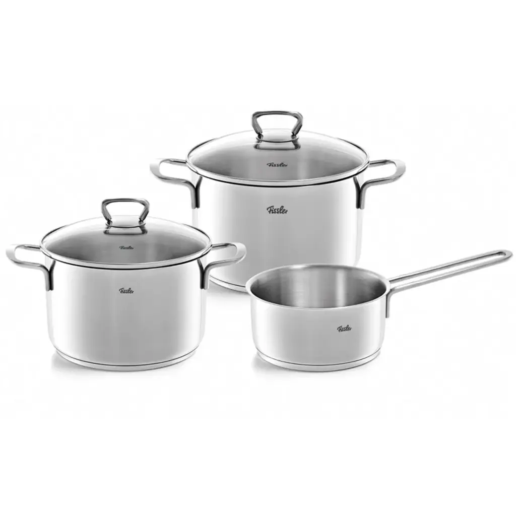 Zestaw garnków marki Fissler z kolekcji Las Vegas zawiera 3 naczynia. Wykonane są one ze stali nierdzewnej 18/10. Naczynia posiadają podstawę termiczną, która zapewnia równomierne rozmieszczenie ciepła. Garnków można używać na każdym rodzaju kuchenki - w tym na indukcji. Posiadają zintegrowaną skalę pomiarową, która umożliwia precyzyjne odmierzanie płynów. Szczelne pokrywy wykonane ze szkła pozwalają uzyskać lepsze efekty gotowania.