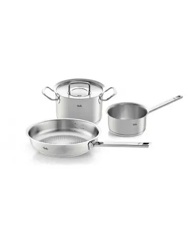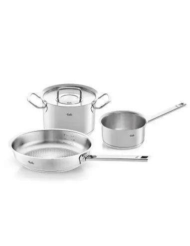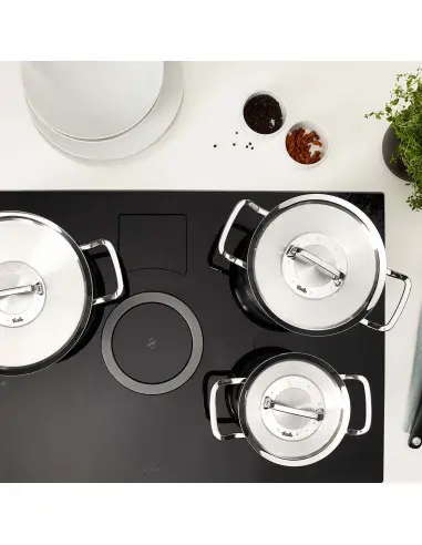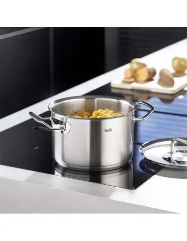 Wykonana z wysokiej jakości satynowanej stali nierdzewnej 18/10, Original Profi Collection jest łatwa w pielęgnacji, niezwykle trwała i niewrażliwa na rdzę. Dzięki podstawie Cookstar naczynia nadają się do wszystkich rodzajów kuchenek i są zoptymalizowane pod kątem kuchenek indukcyjnych. Jego przemyślana konstrukcja umożliwia optymalną absorpcję, dystrybucję i przechowywanie ciepła. Charakterystyczne dla serii izolowane metalowe uchwyty gwarantują przyjemną temperaturę chwytu podczas gotowania.